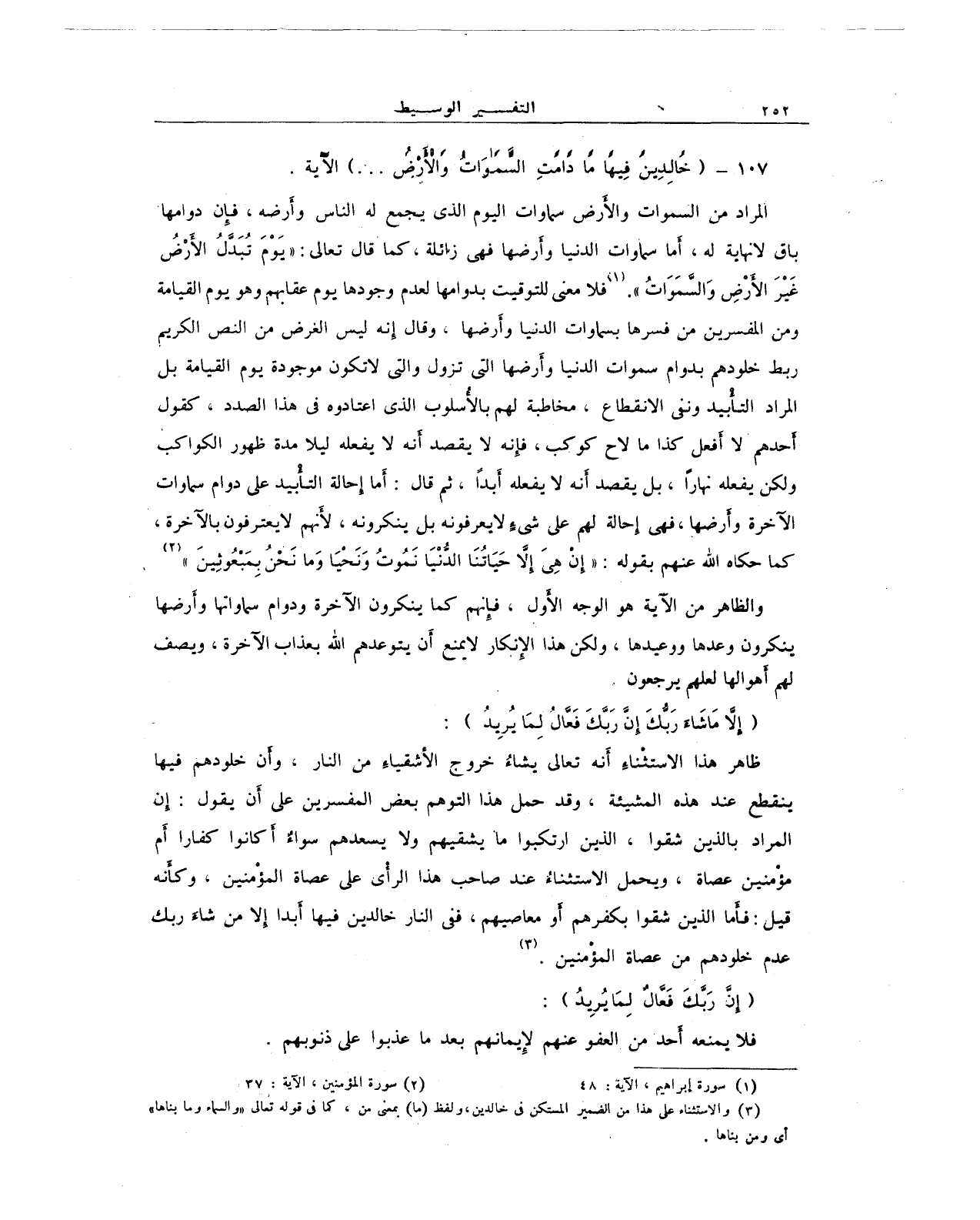 107 - {خَالِدِينَ فِيهَا مَا دَامَتِ السَّمَاوَاتُ وَالْأَرْضُ} الآية.