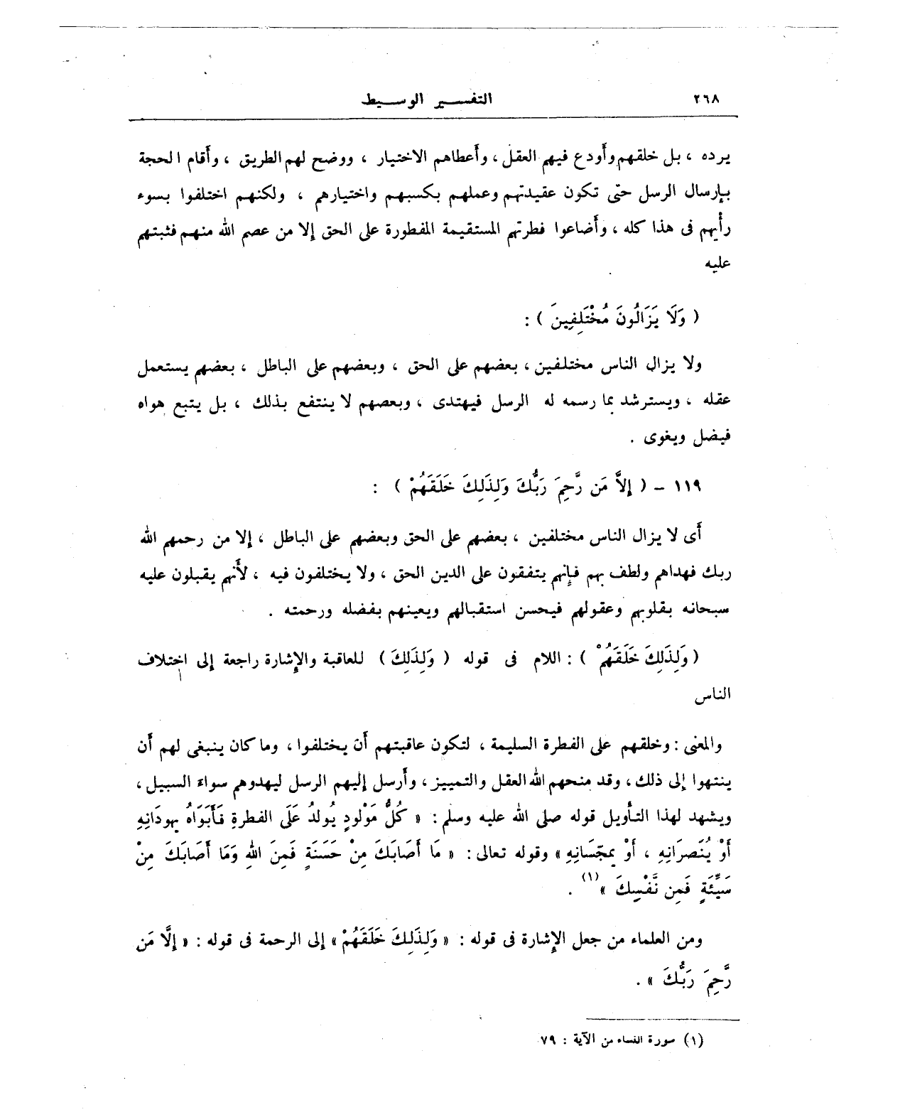 119 - {إِلَّا مَنْ رَحِمَ رَبُّكَ وَلِذَلِكَ خَلَقَهُمْ}: