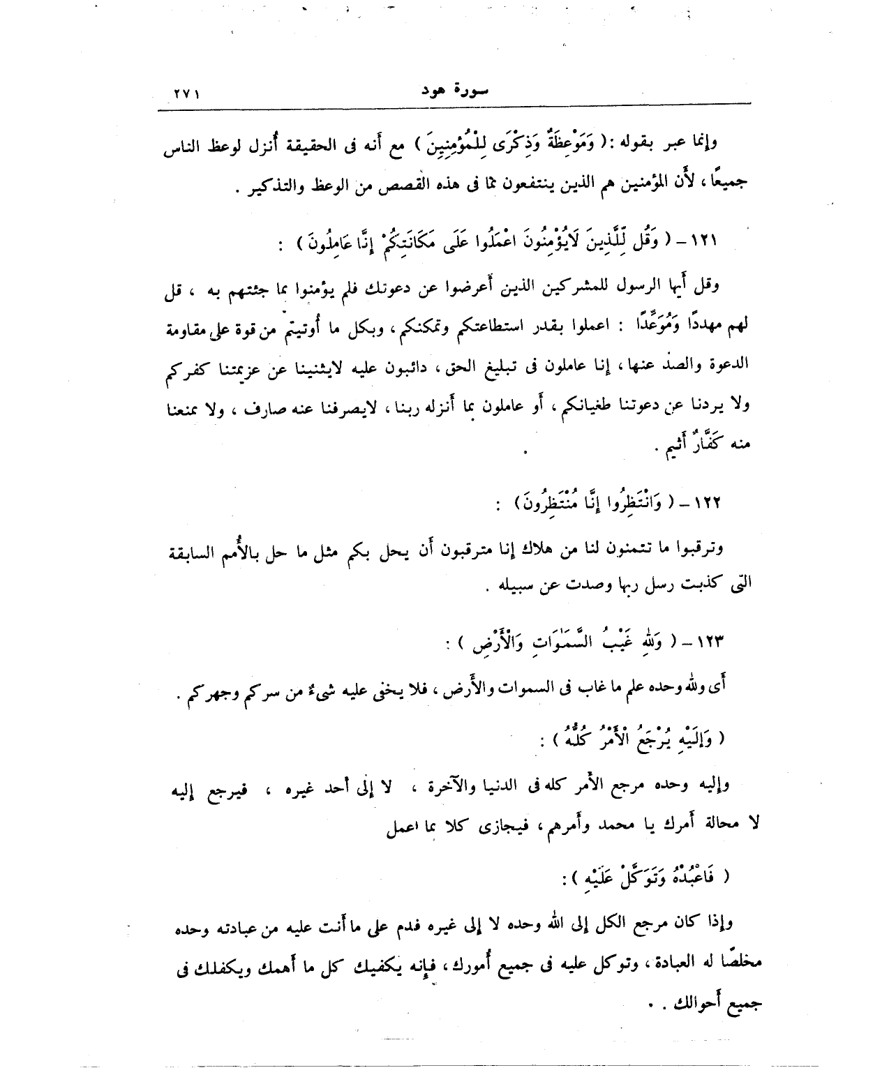 123 - {وَلِلَّهِ غَيْبُ السَّمَاوَاتِ وَالْأَرْضِ}: