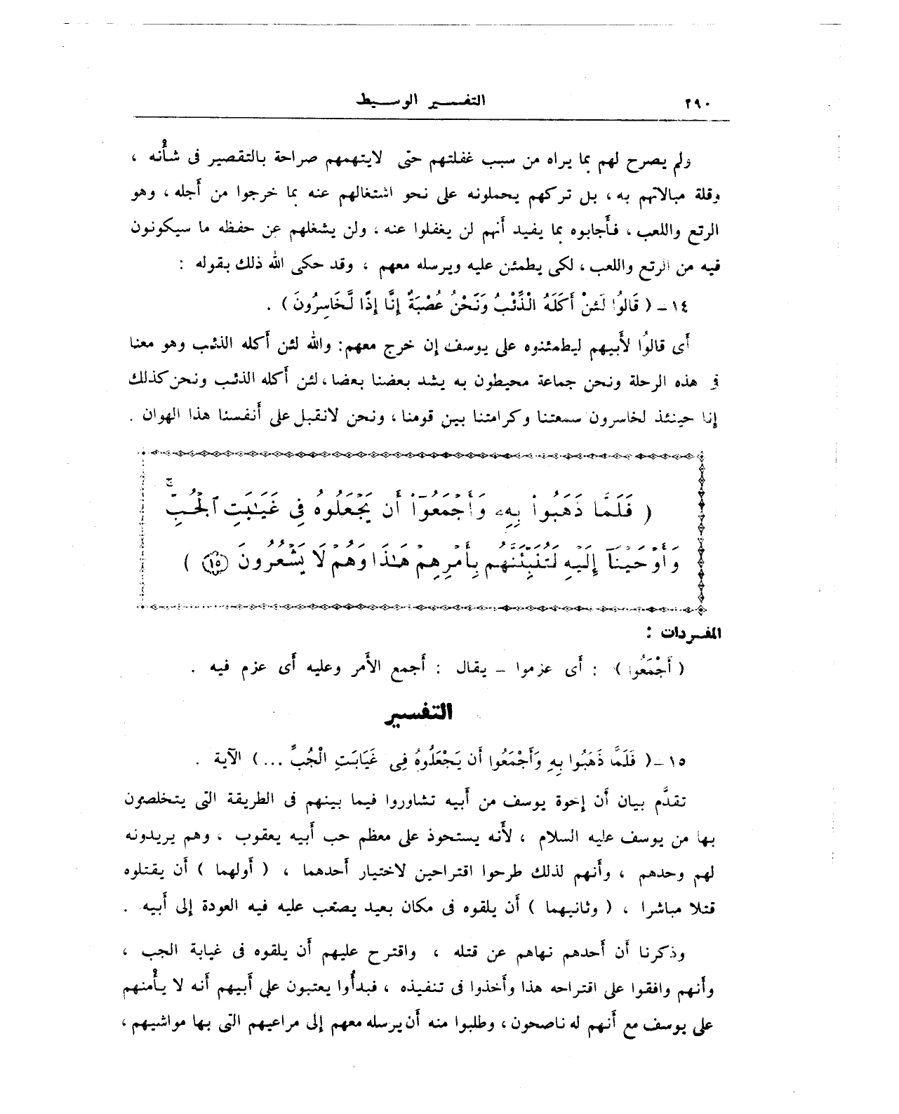 15 - {فَلَمَّا ذَهَبُوا بِهِ وَأَجْمَعُوا أَنْ يَجْعَلُوهُ فِي غَيَابَتِ الْجُبِّ ... } الآية.