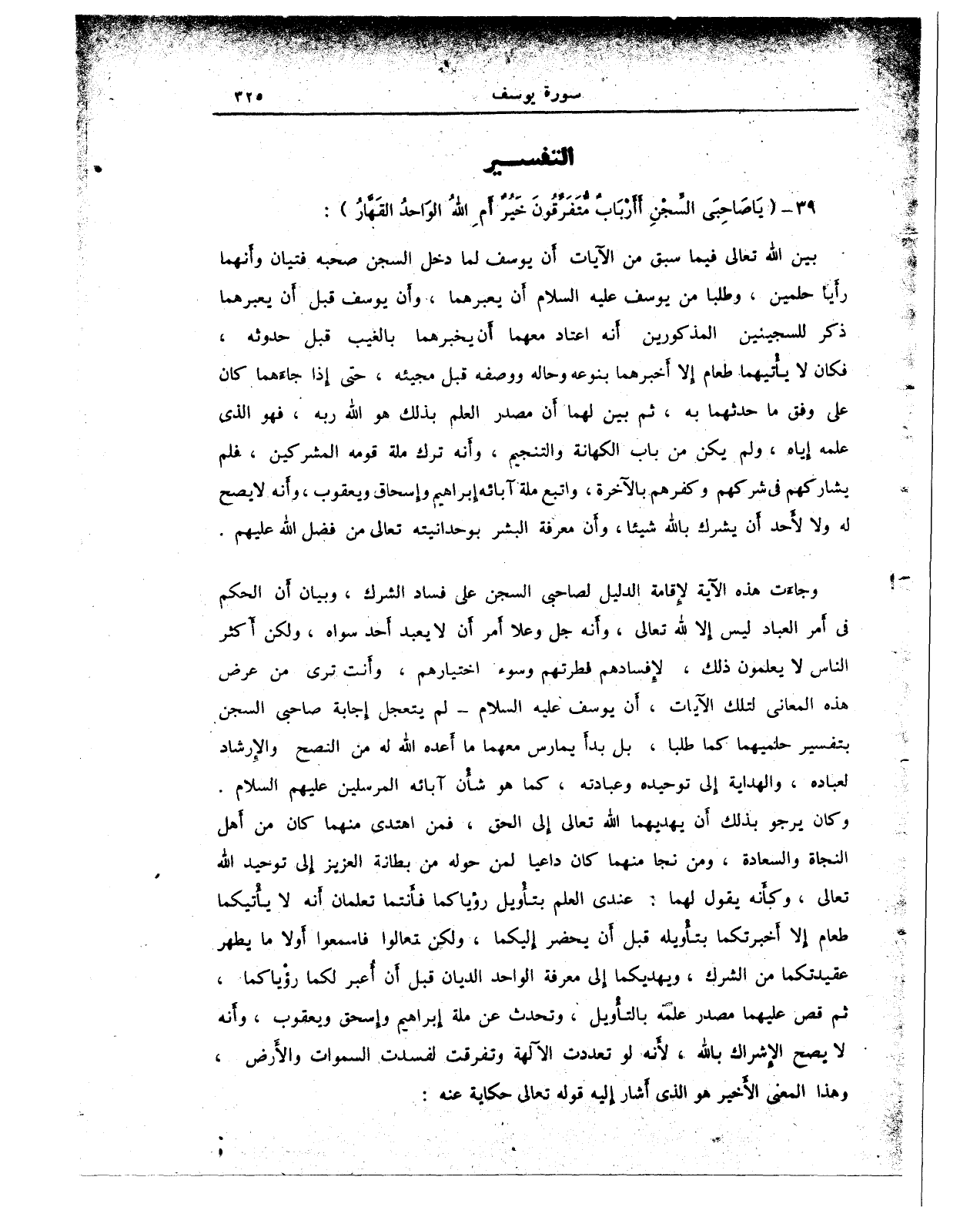 39 - {يَا صَاحِبَيِ السِّجْنِ أَأَرْبَابٌ مُتَفَرِّقُونَ خَيْرٌ أَمِ اللَّهُ الْوَاحِدُ الْقَهَّارُ}: