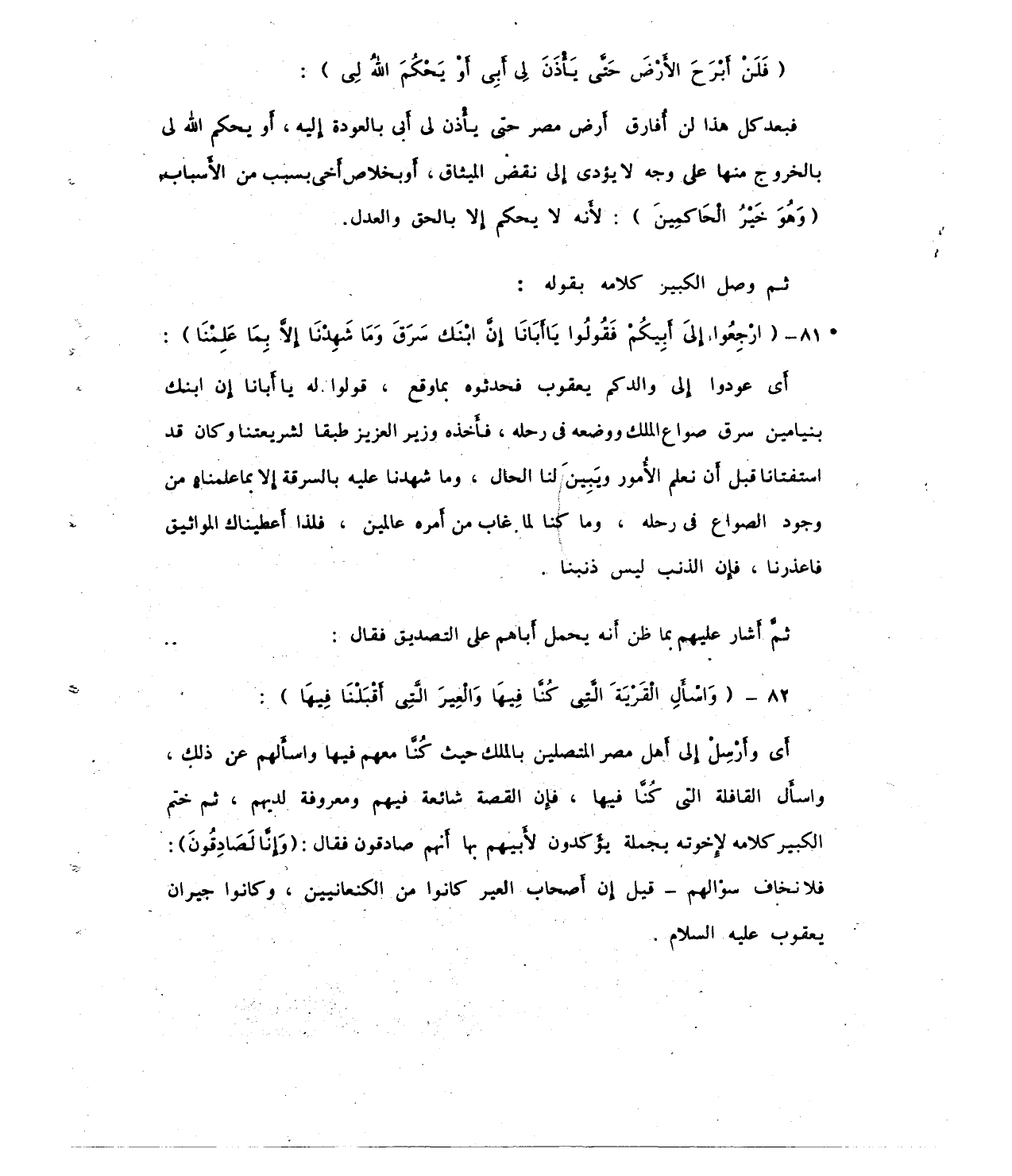 81 - {ارْجِعُوا إِلَى أَبِيكُمْ فَقُولُوا يَا أَبَانَا إِنَّ ابْنَكَ سَرَقَ وَمَا شَهِدْنَا إِلَّا بِمَا عَلِمْنَا}: