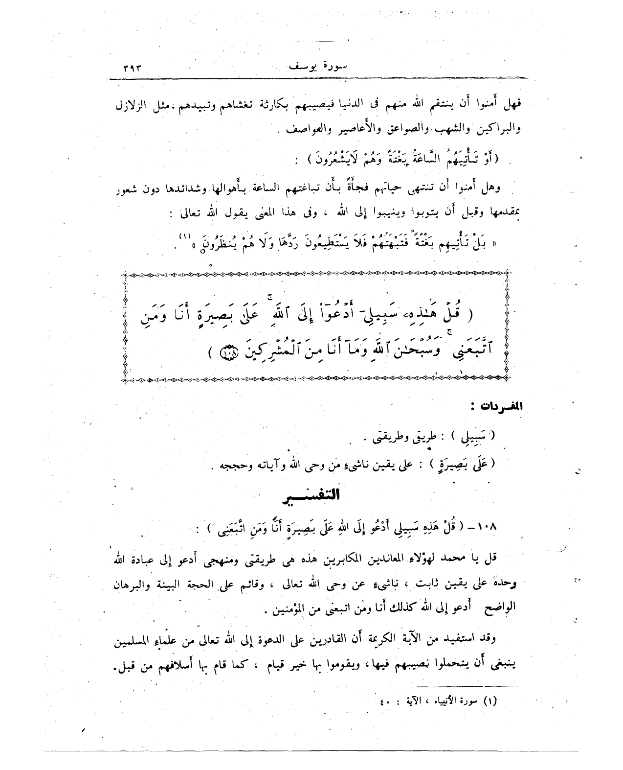 108 - (قُلْ هَذِهِ سَبِيلِي أَدْعُو إِلَى اللَّهِ عَلَى بَصِيرَةٍ أَنَا وَمَنِ اتَّبَعَنِي):