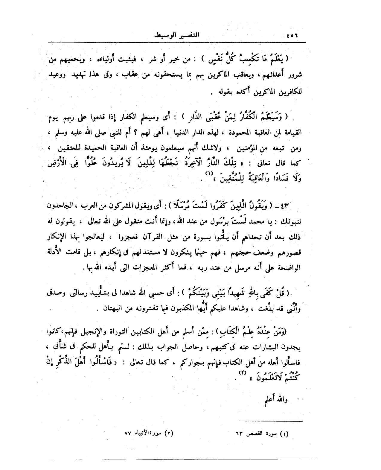 (وَمَنْ عِنْدَهُ عِلْمُ الْكِتَابِ): مِمَّن أَسلم من أَهل الكتابين التوراة والإِنجيل فإِنهم، كانوا يجدون البشارات عنه في كتبهم، وحاصل الجواب بذلك: لستم بأَهل للحكم في شأْنى، فاسأَلوا أَهله من أَهل الكتاب فإِنهم بجواركم، كما قال تعالى: "فَاسْأَلُوا أَهْلَ الذِّكْرِ إِنْ كُنْتُمْ لَا تَعْلَمُونَ" (¬2).