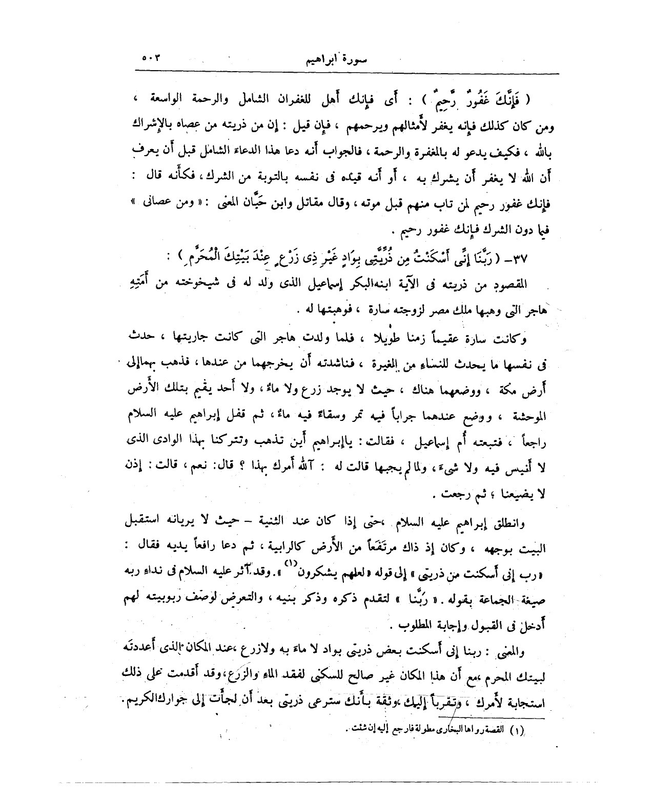 37 - {رَبَّنَا إِنِّي أَسْكَنْتُ مِنْ ذُرِّيَّتِي بِوَادٍ غَيْرِ ذِي زَرْعٍ عِنْدَ بَيْتِكَ الْمُحَرَّمِ}: