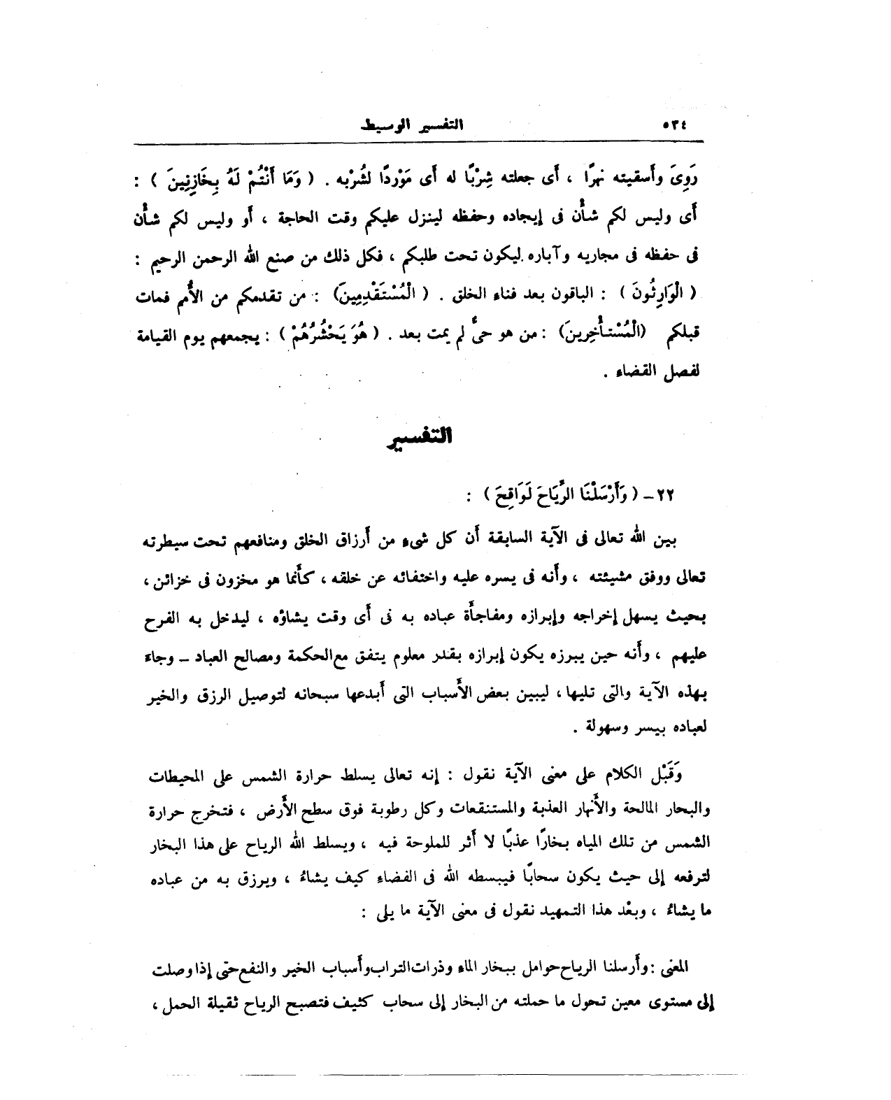 رَوِىَ وأَسقيته نهرًا، أَي جعلته شِرْبًا له أَي مَوْردًا لشُربه. (وَمَا أَنْتُمْ لَهُ بِخَازِيينَ): أَي وليس لكم شأْن في إيجاده وحفظه لينزل عليكم وقت الحاجة، أو وليس لكم شأْن في حفظه في مجاريه وآباره ليكون تحت طلبكم، فكل ذلك من صنع الله الرحمن الرحيم: (الوَارِثُونَ): الباقون بعد فناء الخلق. (الْمُسْتَقْدِمِينَ): من تقدمكم من الأُمم فمات قبلكم (الْمُسْتأْخِرينَ): من هو حى لم يمت بعد. (هُوَ يَحْشُرُهُمْ): يجمعهم يوم القيامة لفصل القضاء.