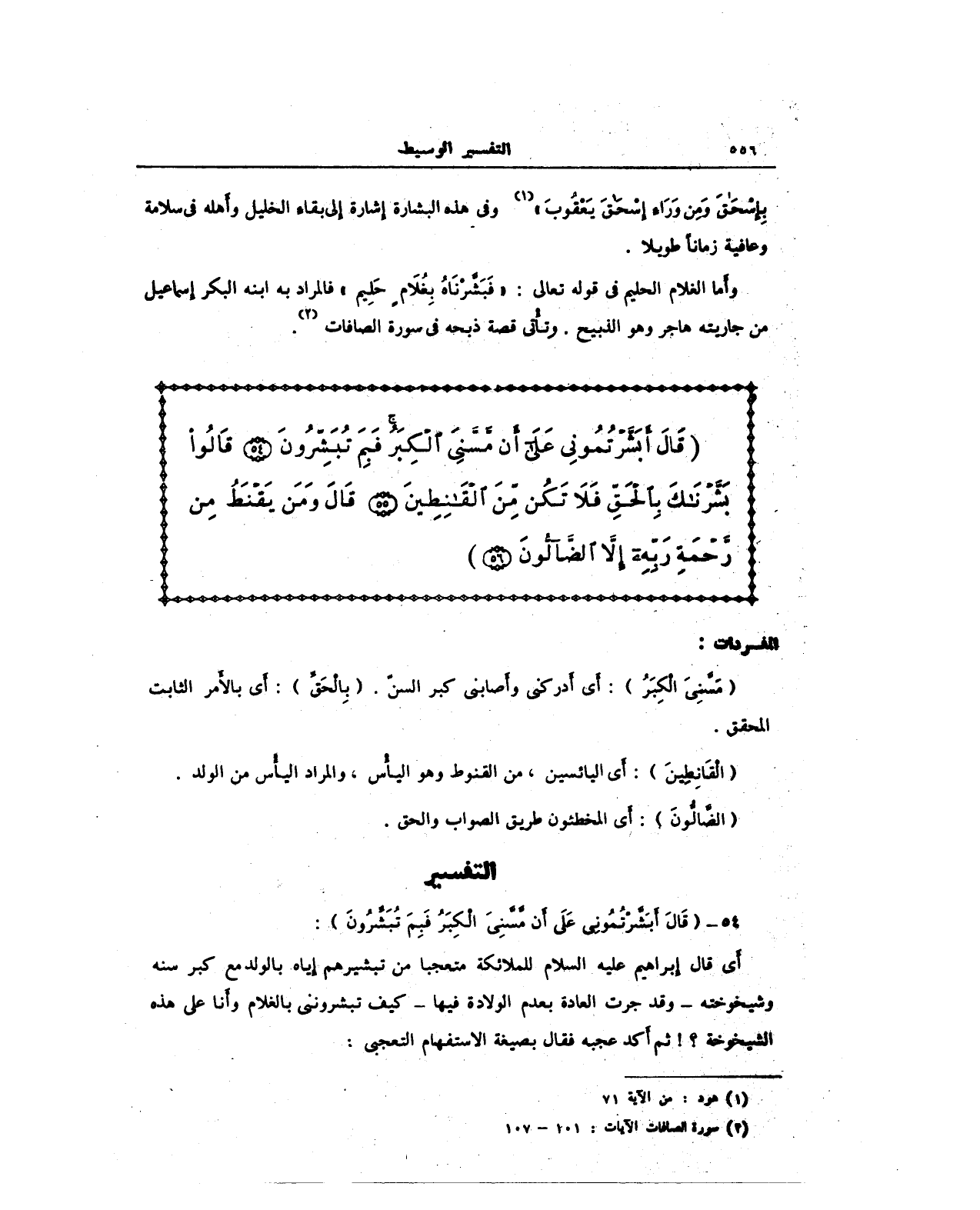 وأَما الغلام الحليم في قوله تعالى: (فَبَشَّرْنَاهُ بِغُلَامٍ حَلِيمٍ) فالمراد به ابنه البكر إِسماعيل من جاريته هاجر وهو الذبيح. وتأتى قصة ذبحه في سورة الصافات (¬2).