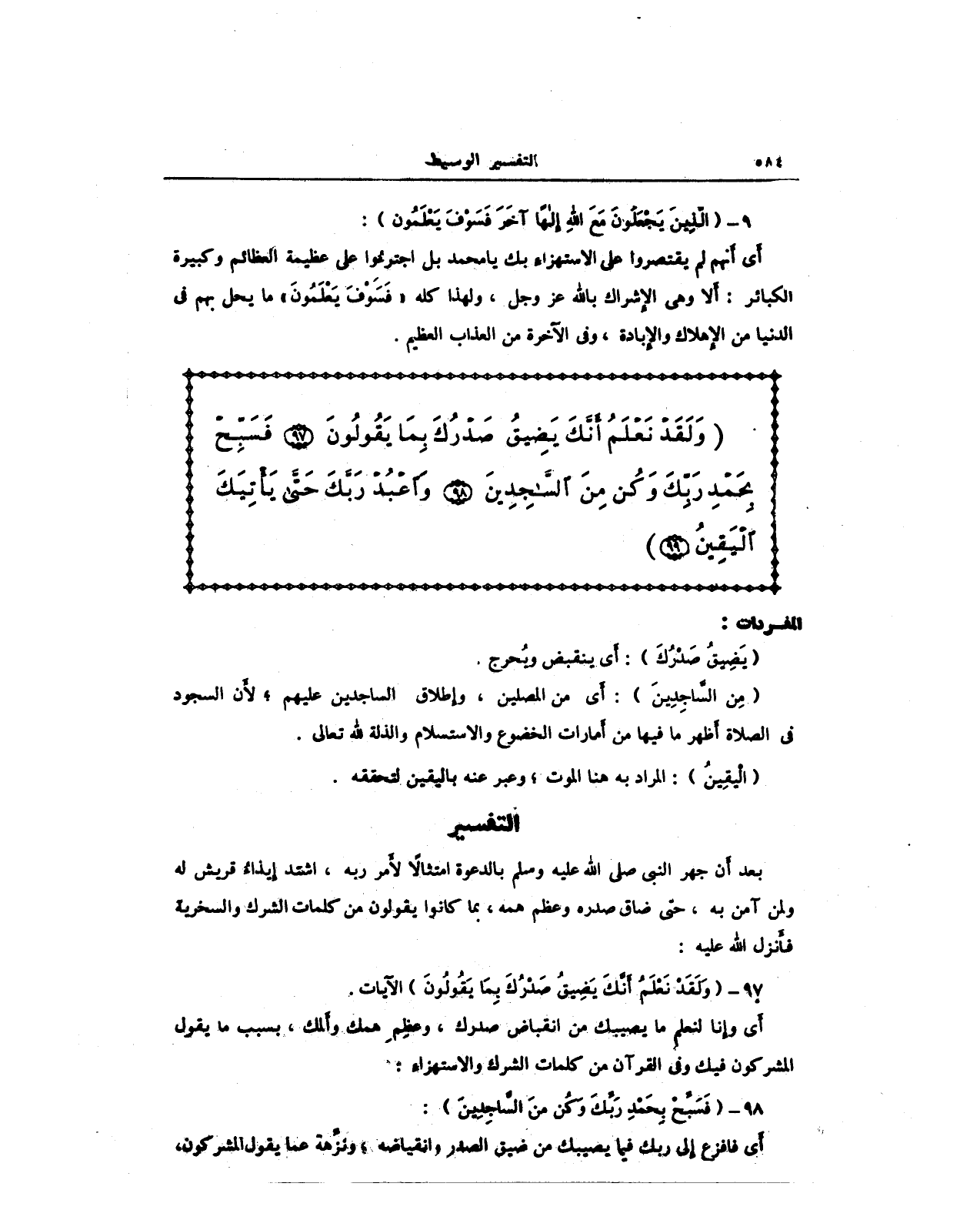 97 - (وَلَقَدْ نَعْلَمُ أَنَّكَ يَضِيقُ صَدْرُكَ بِمَا يَقُولُونَ) الآيات.