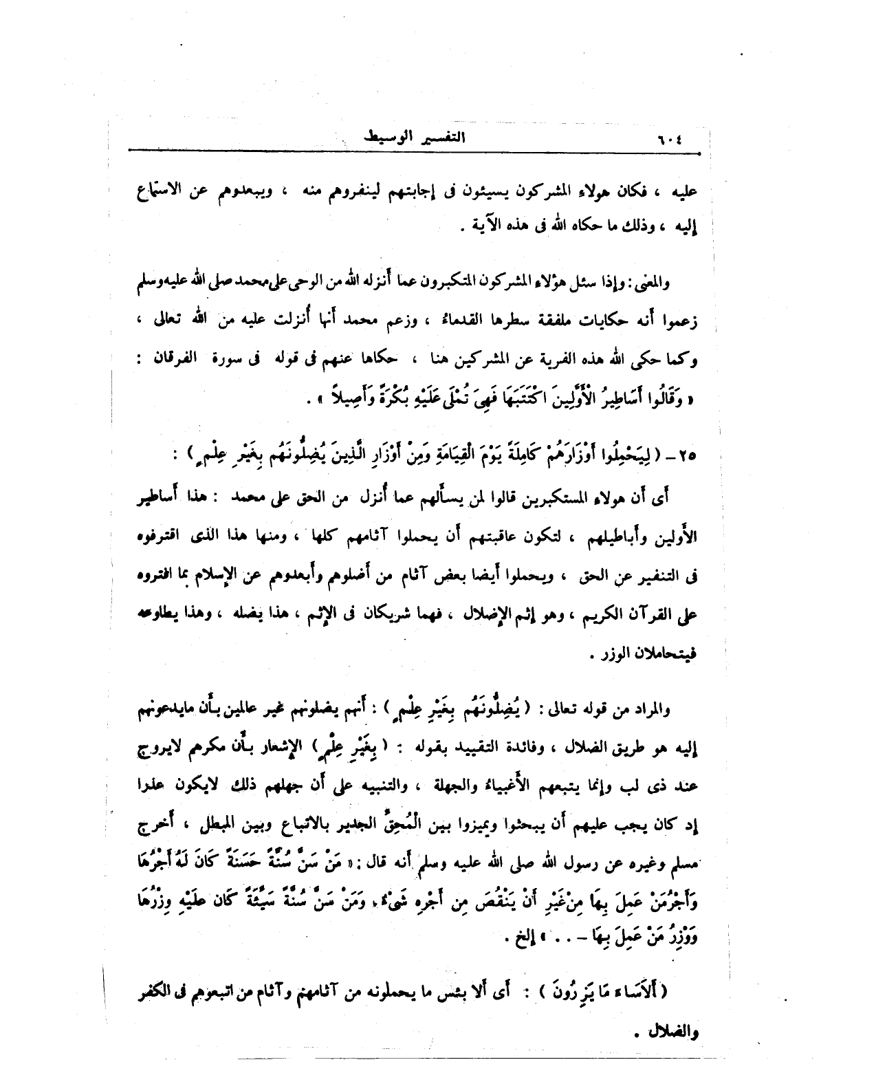 25 - {لِيَحْمِلُوا أَوْزَارَهُمْ كَامِلَةً يَوْمَ الْقِيَامَةِ وَمِنْ أَوْزَارِ الَّذِينَ يُضِلُّونَهُمْ بِغَيْرِ عِلْمٍ}:
