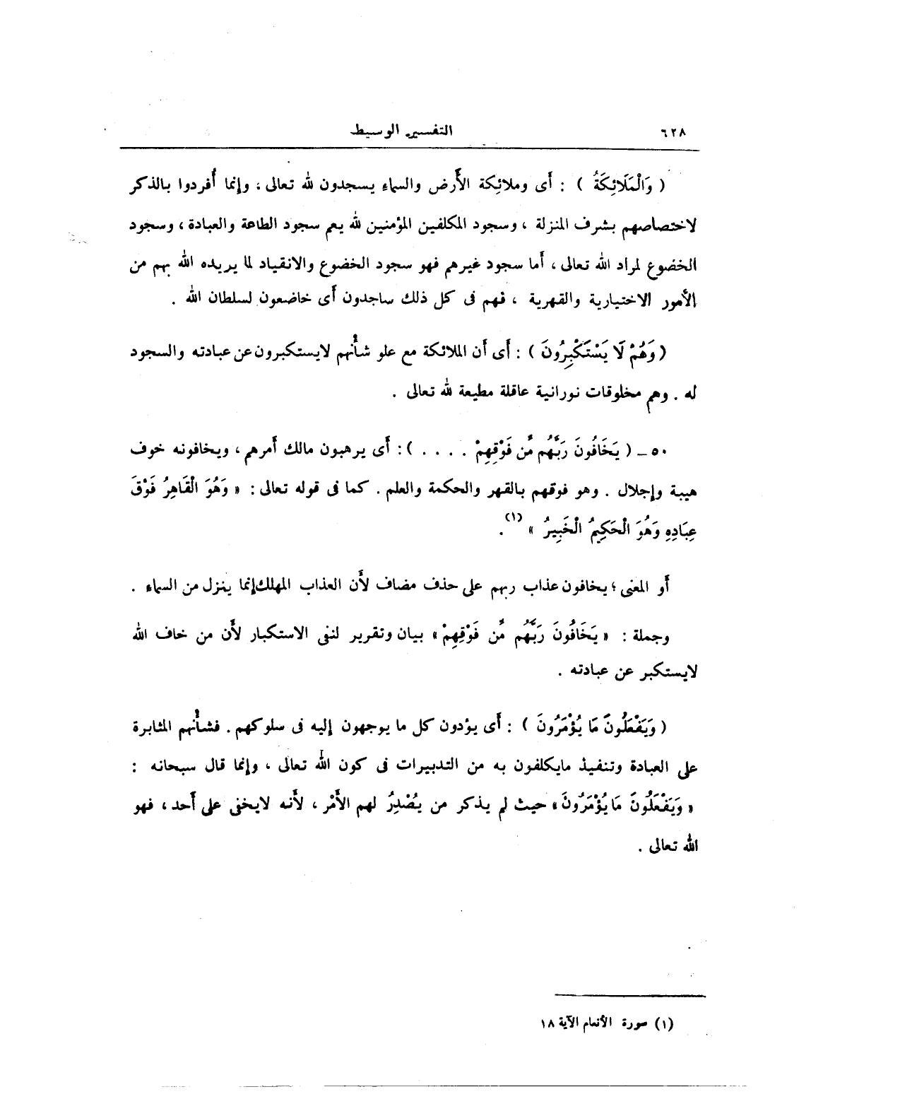 50 - {يَخَافُونَ رَبَّهُمْ مِنْ فَوْقِهِمْ ... }: أَي يرهبون مالك أمرهم، ويخافونه خوف هيبة وإجلال. وهو فوقهم بالقهر والحكمة والعدم. كما في قوله تعالى: {الْقَاهِرُ فَوْقَ عِبَادِهِ وَهُوَ الْحَكِيمُ الْخَبِيرُ} (¬1).