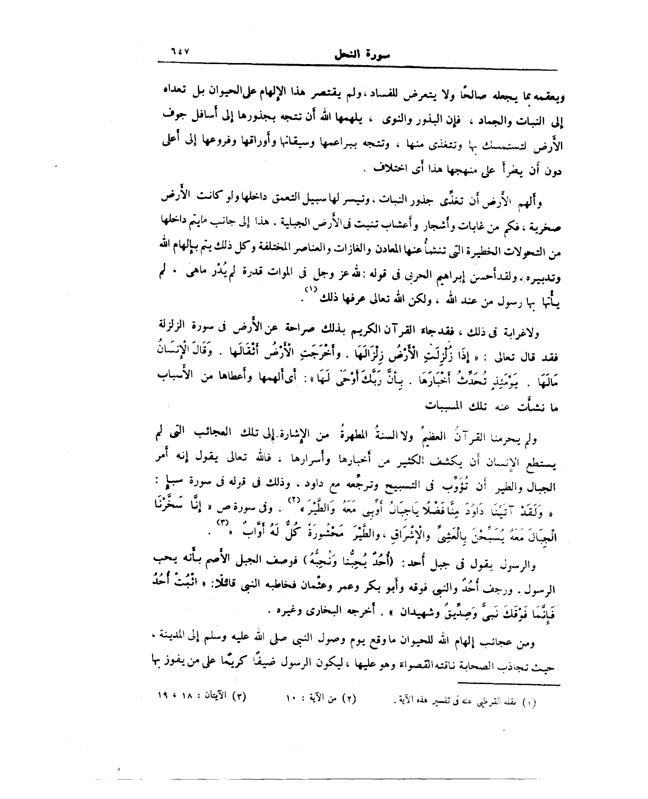 ولم يحرمنا القرآن العظيمُ ولا السنةُ المطهرة من الإشارة إِلى تلك العجائب التي لم يستطع الإنسان أن يكشف الكثير من أخبارها وأسرارها، فالله تعالى يقول إنه أَمر الجبال والطير أن تُؤَوِّب فى التسبيح وترجِّعه مع داود، وذلك في قوله فى سورة سبإ: {وَلَقَدْ آتَيْنَا دَاوُودَ مِنَّا فَضْلًا يَا جِبَالُ أَوِّبِي مَعَهُ وَالطَّيْرَ} (¬2). وفى سورة ص {إِنَّا سَخَّرْنَا الْجِبَالَ مَعَهُ يُسَبِّحْنَ بِالْعَشِيِّ وَالْإِشْرَاقِ (18) وَالطَّيْرَ مَحْشُورَةً كُلٌّ لَهُ أَوَّابٌ} (¬3).