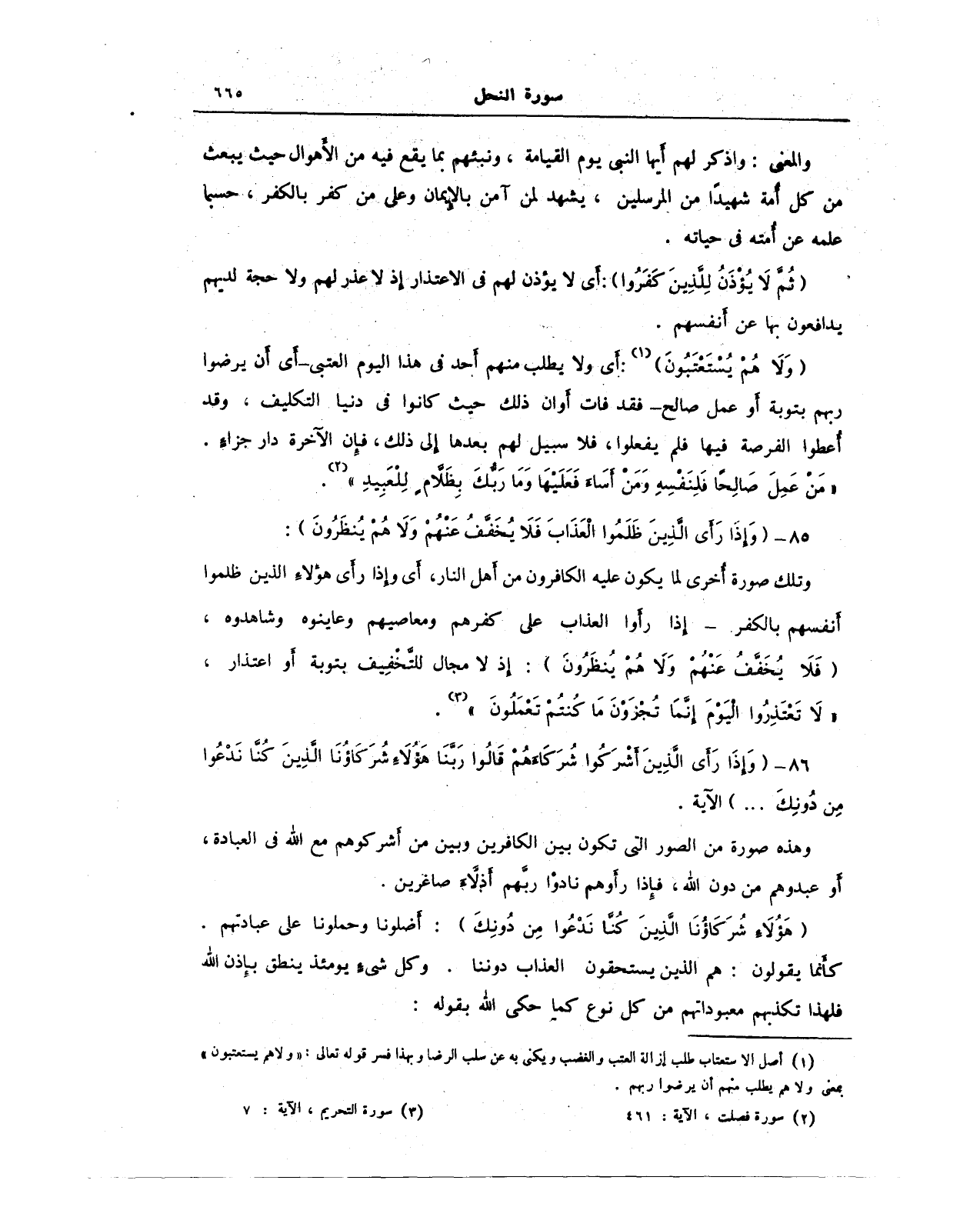 86 - {وَإِذَا رَأَى الَّذِينَ أَشْرَكُوا شُرَكَاءَهُمْ قَالُوا رَبَّنَا هَؤُلَاءِ شُرَكَاؤُنَا الَّذِينَ كُنَّا نَدْعُو مِنْ دُونِكَ ... } الآية.