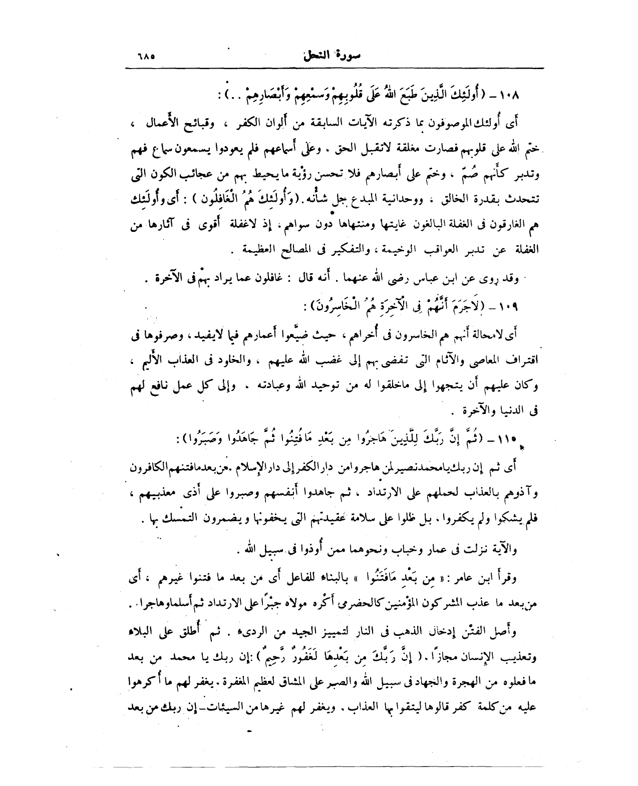 108 - {أُولَئِكَ الَّذِينَ طَبَعَ اللَّهُ عَلَى قُلُوبِهِمْ وَسَمْعِهِمْ وَأَبْصَارِهِمْ .. }: