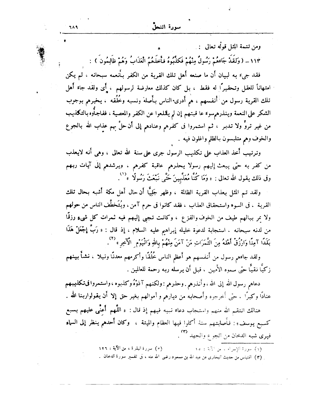(¬3) اقتباس من حديث البخاري عن عبد الله بن مسعود رضي الله عنه، في تفسير سورة الدخان.