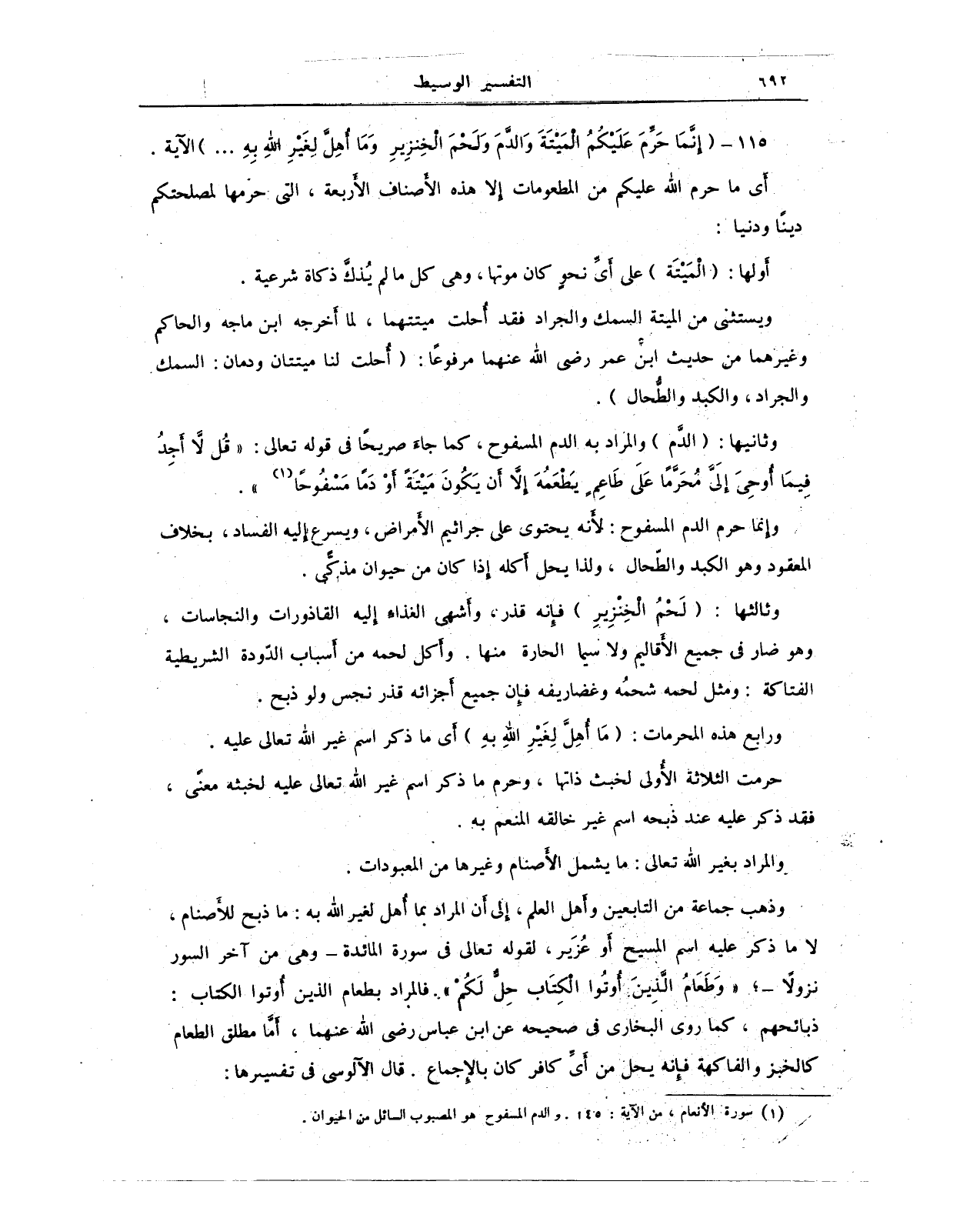 115 - {إِنَّمَا حَرَّمَ عَلَيْكُمُ الْمَيْتَةَ وَالدَّمَ وَلَحْمَ الْخِنْزِيرِ وَمَا أُهِلَّ لِغَيْرِ اللَّهِ بِهِ ... } الآية.