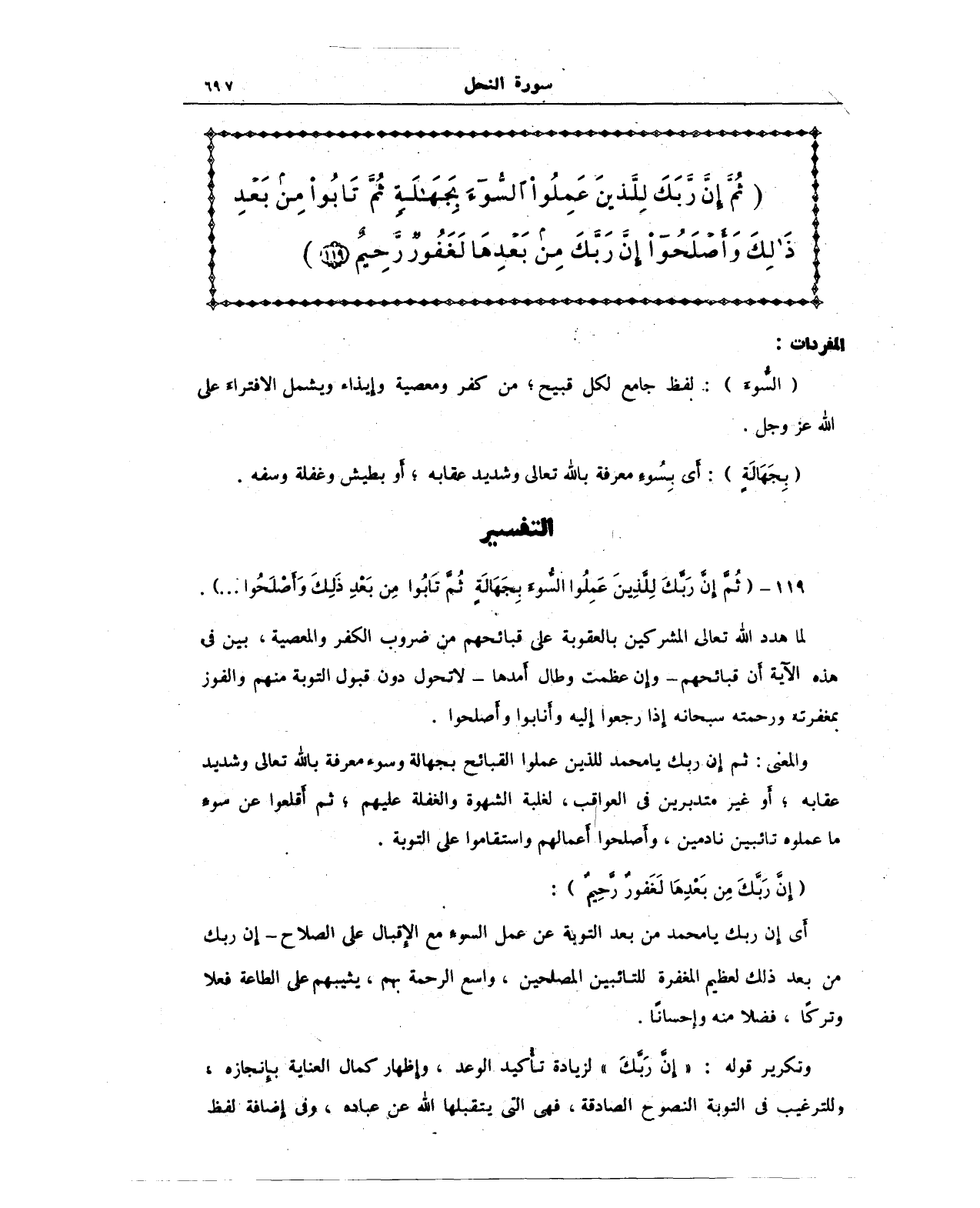 {ثُمَّ إِنَّ رَبَّكَ لِلَّذِينَ عَمِلُوا السُّوءَ بِجَهَالَةٍ ثُمَّ تَابُوا مِنْ بَعْدِ ذَلِكَ وَأَصْلَحُوا إِنَّ رَبَّكَ مِنْ بَعْدِهَا لَغَفُورٌ رَحِيمٌ (119)}