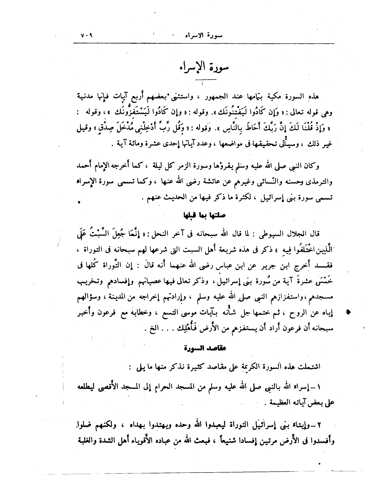 1 - إسراء الله بالنبي صلى الله عليه وسلم من المسجد الحرام إِلى المسجد الأقصى ليطلعه على بعض آياته العظيمة.