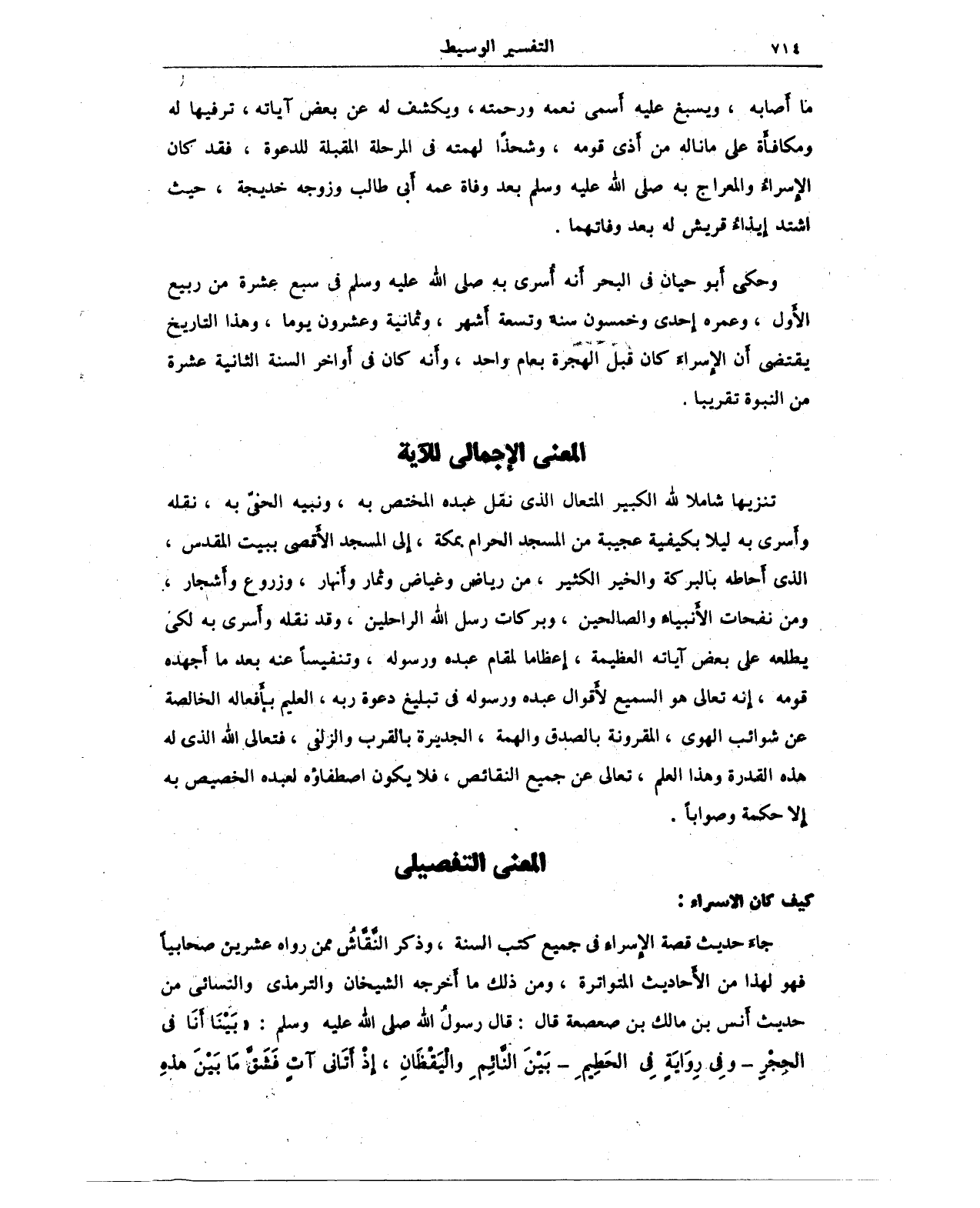 تنزيها شاملا لله الكبير المتعال الذي نقل عبده المختص به، ونبيه الخفيّ به، نقله وأسرى به ليلًا بكيفية عجيبة من المسجد الحرام بمكة، إلى المسجد الأقصى ببيت المقدس، الذي أحاطه بالبركة والخير الكثير، من رياض وغياض وثمار وأنهار، وزروع وأشجار, ومن نفحات الأنبياء والصالحين، وبركات رسل الله الراحلين، وقد نقله وأَسرى به لكي يطلعه على بعض آياته العظيمة، إعظاما لمقام عبده ورسوله، وتنفيسا عنه بعد ما أجهده قومه، أنه تعالى هو السميع لأقوال عبده ورسوله في تبليغ دعوة ربه، العليم بأفعاله الخالصة عن شوائب الهوى، المقرونة بالصدق والهمة، الجديرة بالقرب والزلفى، فتعالى الله الذي له هذه القدرة وهذا العلم، تعالى عن جميع النقائص، فلا يكون اصطفاؤه لعبده الخصيص به إلا حكمة وصوابًا.