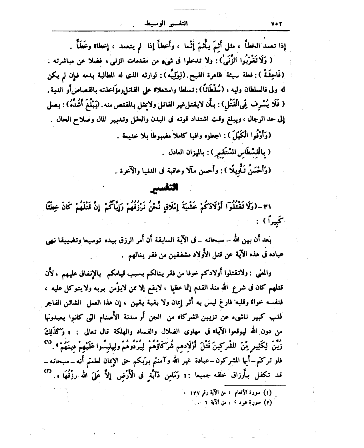 31 - {وَلَا تَقْتُلُوا أَوْلَادَكُمْ خَشْيَةَ إِمْلَاقٍ نَحْنُ نَرْزُقُهُمْ وَإِيَّاكُمْ إِنَّ قَتْلَهُمْ كَانَ خِطْئًا كَبِيرًا}: