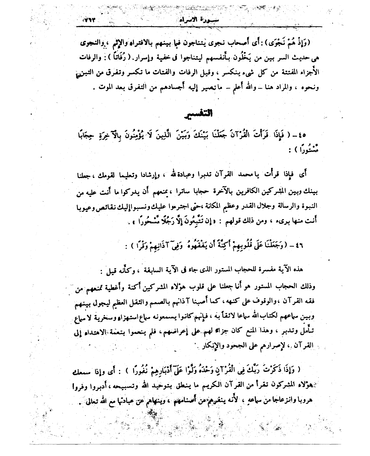 45 - {وَإِذَا قَرَأْتَ الْقُرْآنَ جَعَلْنَا بَيْنَكَ وَبَيْنَ الَّذِينَ لَا يُؤْمِنُونَ بِالْآخِرَةِ حِجَابًا مَسْتُورًا}: