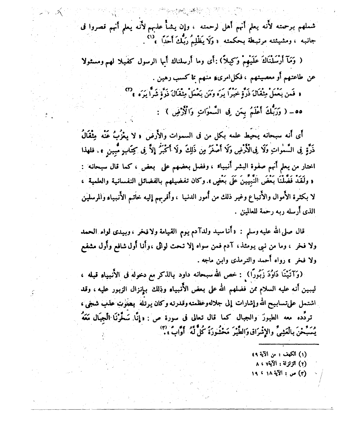 {وَآتَيْنَا دَاوُودَ زَبُورًا}: خص الله سبحانه داود بالذكر مع دخوله في الأنبياء قبله، ليبين أَنه عليه السلام ممن فضلهم الله على بعض الأنبياء وذلك بإنزال الزبور عليه، وقد اشتمل على تسابيح الله وإِشارات إلى جلاله وعظمته وقدرته وكان يرتله بصوت عذب شجي، تردِّده معه الطيور والجبال كما قال تعالى في سورة ص: {إِنَّا سَخَّرْنَا الْجِبَالَ مَعَهُ يُسَبِّحْنَ بِالْعَشِيِّ وَالْإِشْرَاقِ (18) وَالطَّيْرَ مَحْشُورَةً كُلٌّ لَهُ أَوَّابٌ} (¬3).