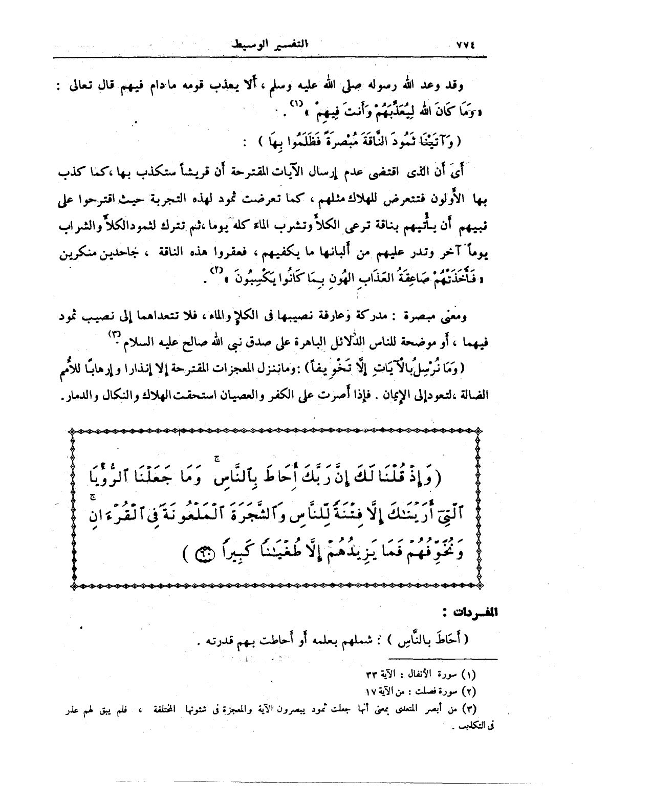{وَإِذْ قُلْنَا لَكَ إِنَّ رَبَّكَ أَحَاطَ بِالنَّاسِ وَمَا جَعَلْنَا الرُّؤْيَا الَّتِي أَرَيْنَاكَ إِلَّا فِتْنَةً لِلنَّاسِ وَالشَّجَرَةَ الْمَلْعُونَةَ فِي الْقُرْآنِ وَنُخَوِّفُهُمْ فَمَا يَزِيدُهُمْ إِلَّا طُغْيَانًا كَبِيرًا (60)}