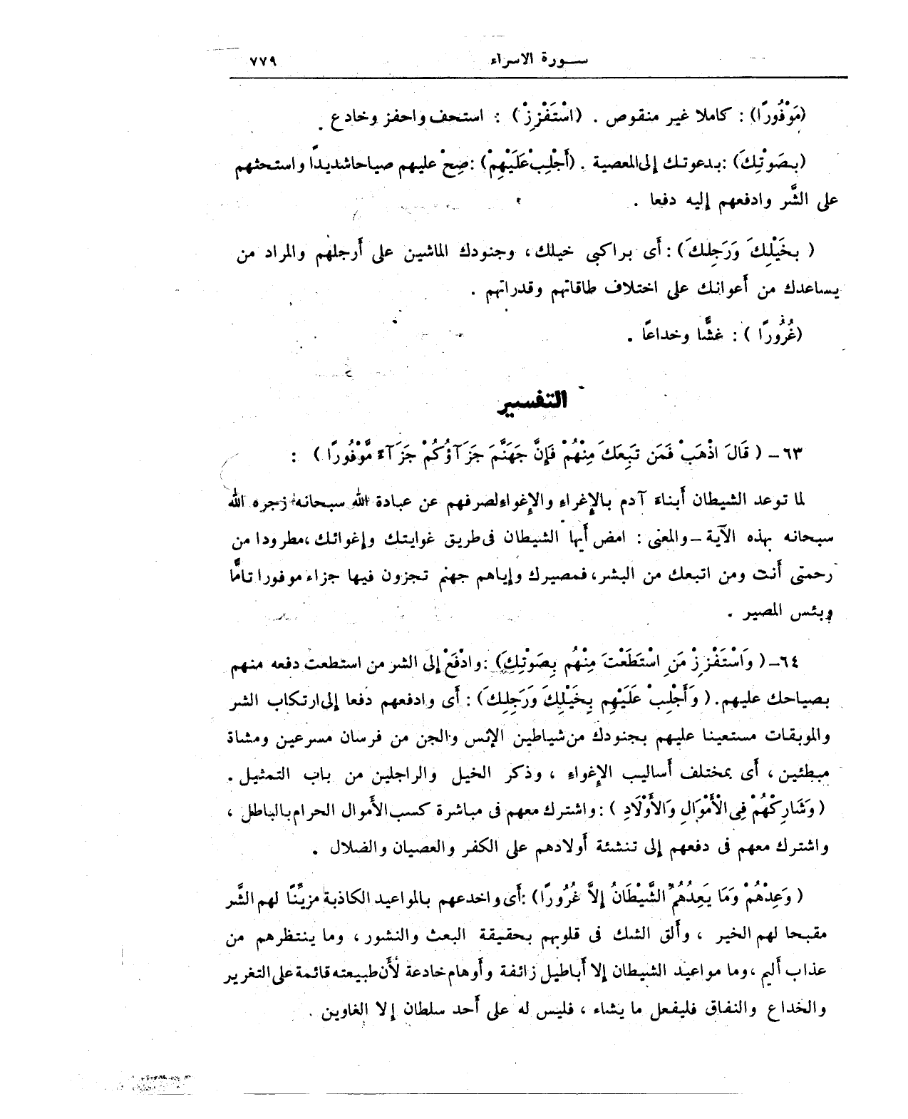 {مَوْفُورًا}: كاملا غير منقوص. {اسْتَفْزِزْ}: استحف واحفز وخادع.