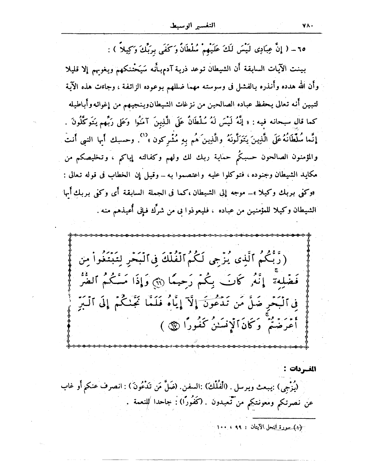 {يُزْجِي}: يبعث ويرسل. {الْفُلْكَ}: السفن. {ضَلَّ مَنْ تَدْعُونَ}: انصرف عنكم أو غاب عن نصرتكم ومعونتكم من تعبدون. {كَفُورًا}: جاحدا للنعمة.