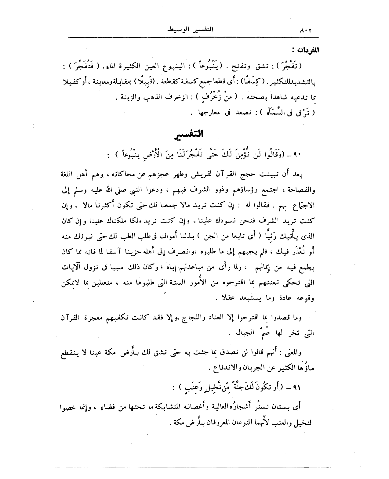 90 - {وَقَالُوا لَنْ نُؤْمِنَ لَكَ حَتَّى تَفْجُرَ لَنَا مِنَ الْأَرْضِ يَنْبُوعًا}: