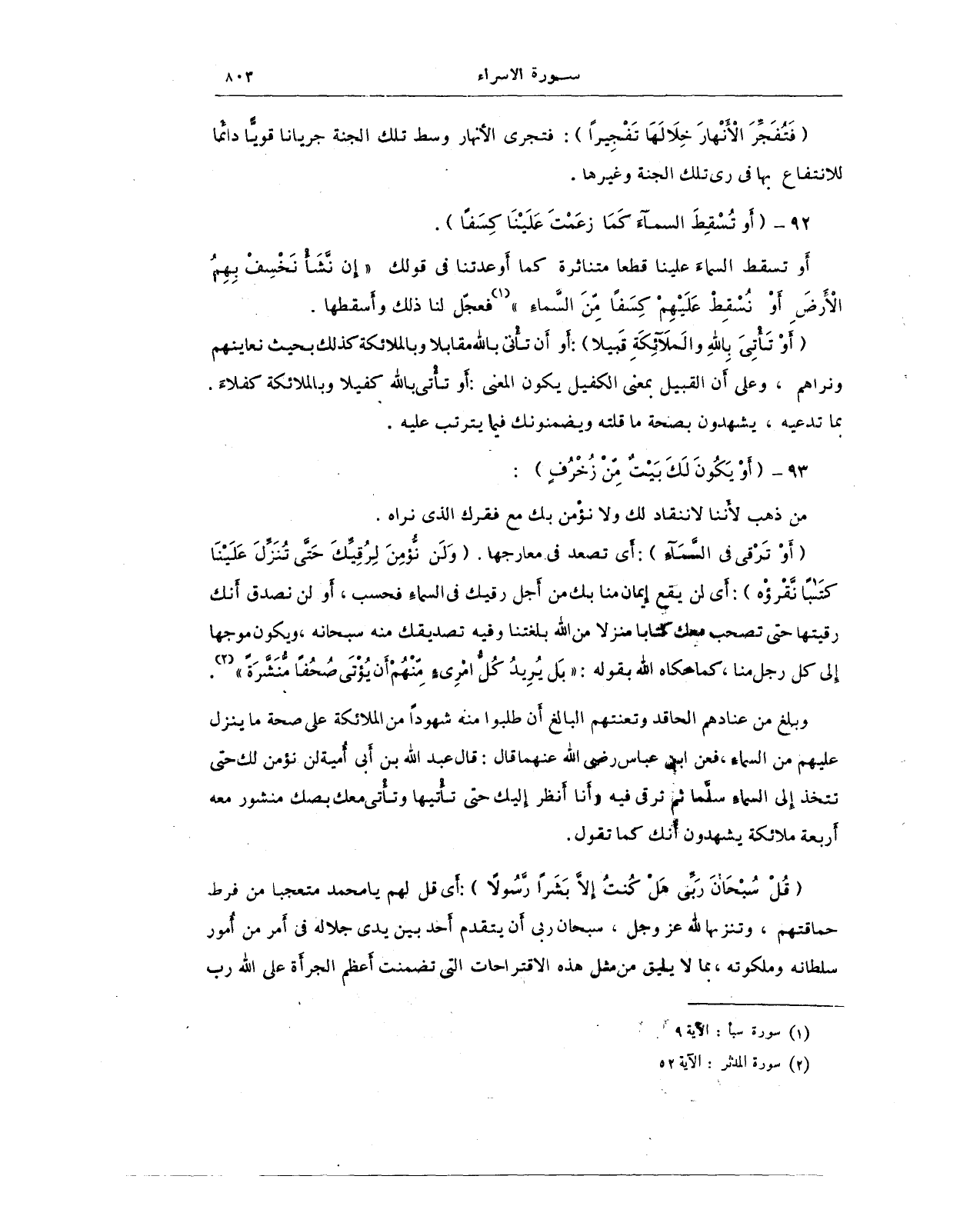 92 - {أَوْ تُسْقِطَ السَّمَاءَ كَمَا زَعَمْتَ عَلَيْنَا كِسَفًا}.