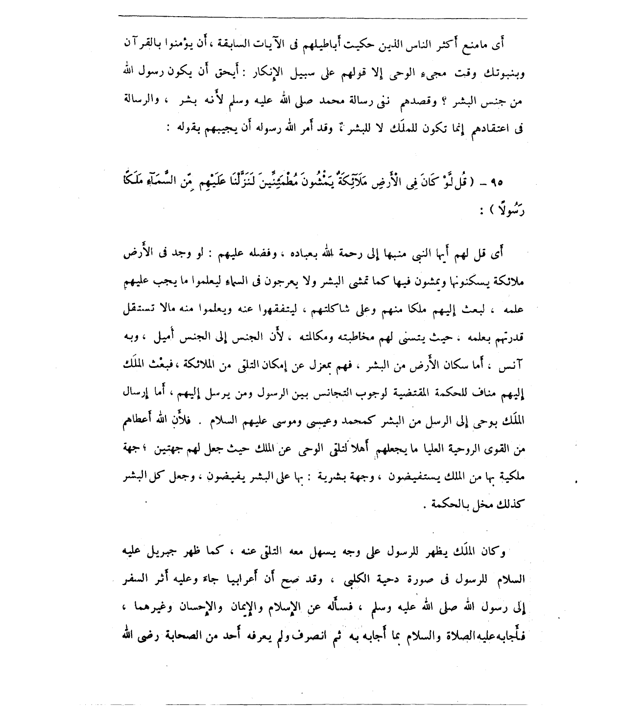 95 - {قُلْ لَوْ كَانَ فِي الْأَرْضِ مَلَائِكَةٌ يَمْشُونَ مُطْمَئِنِّينَ لَنَزَّلْنَا عَلَيْهِمْ مِنَ السَّمَاءِ مَلَكًا رَسُولًا}: