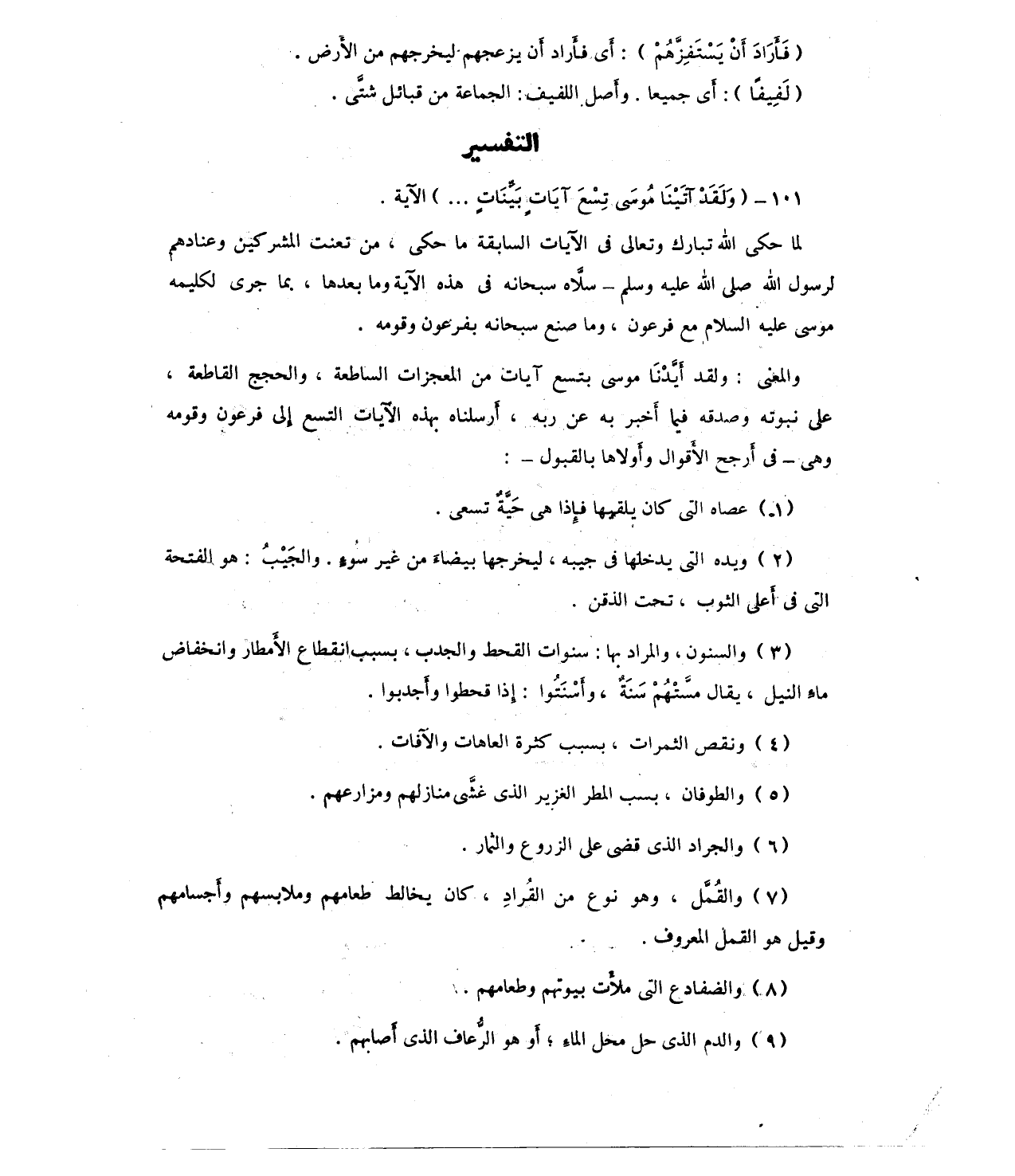 101 - {وَلَقَدْ آتَيْنَا مُوسَى تِسْعَ آيَاتٍ بَيِّنَاتٍ ... } الآية.