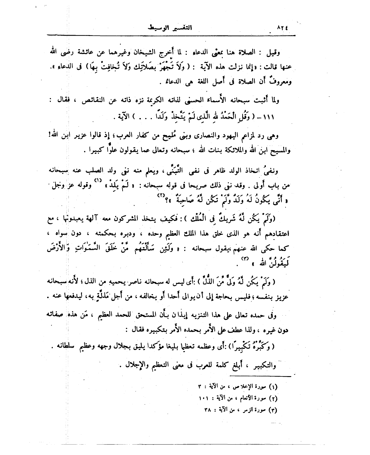 111 - {وقُلِ الْحَمْدُ لِلَّهِ الَّذِي لَمْ يَتَّخِذْ وَلَدًا ... } الآية.