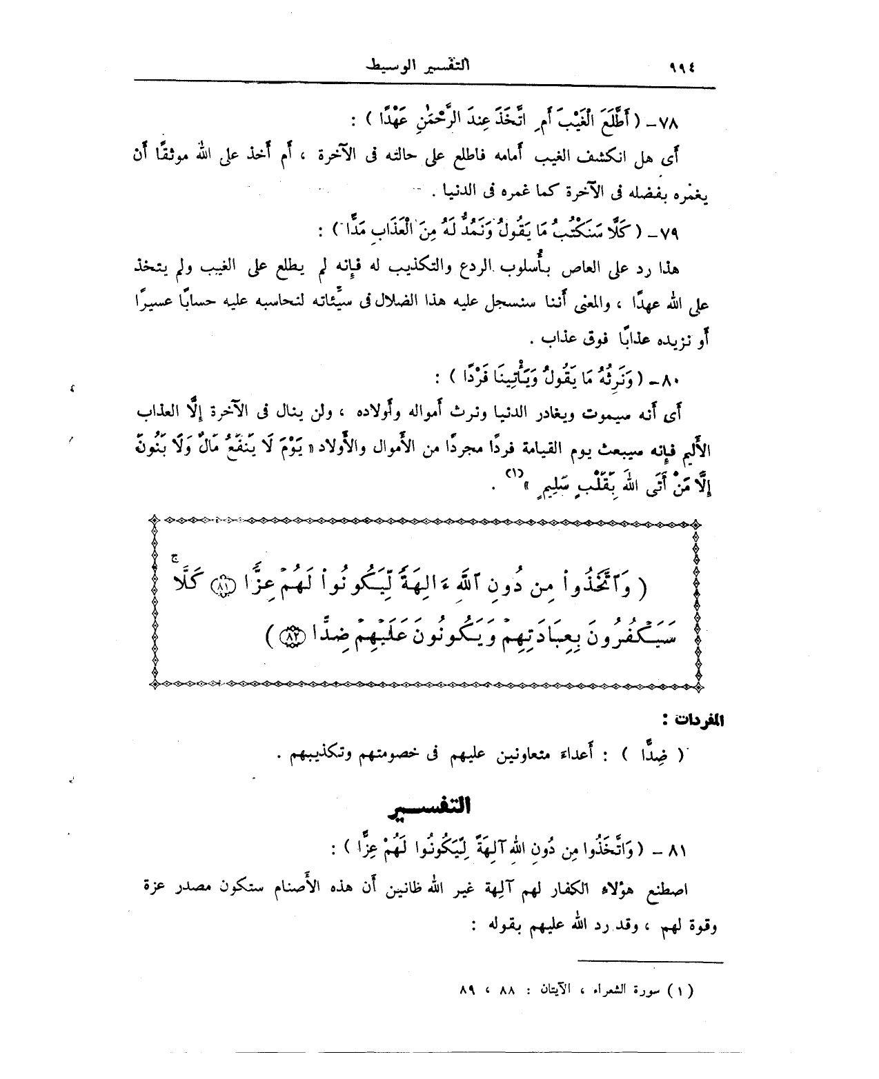 81 - {وَاتَّخَذُوا مِنْ دُونِ اللَّهِ آلِهَةً لِيَكُونُوا لَهُمْ عِزًّا}: