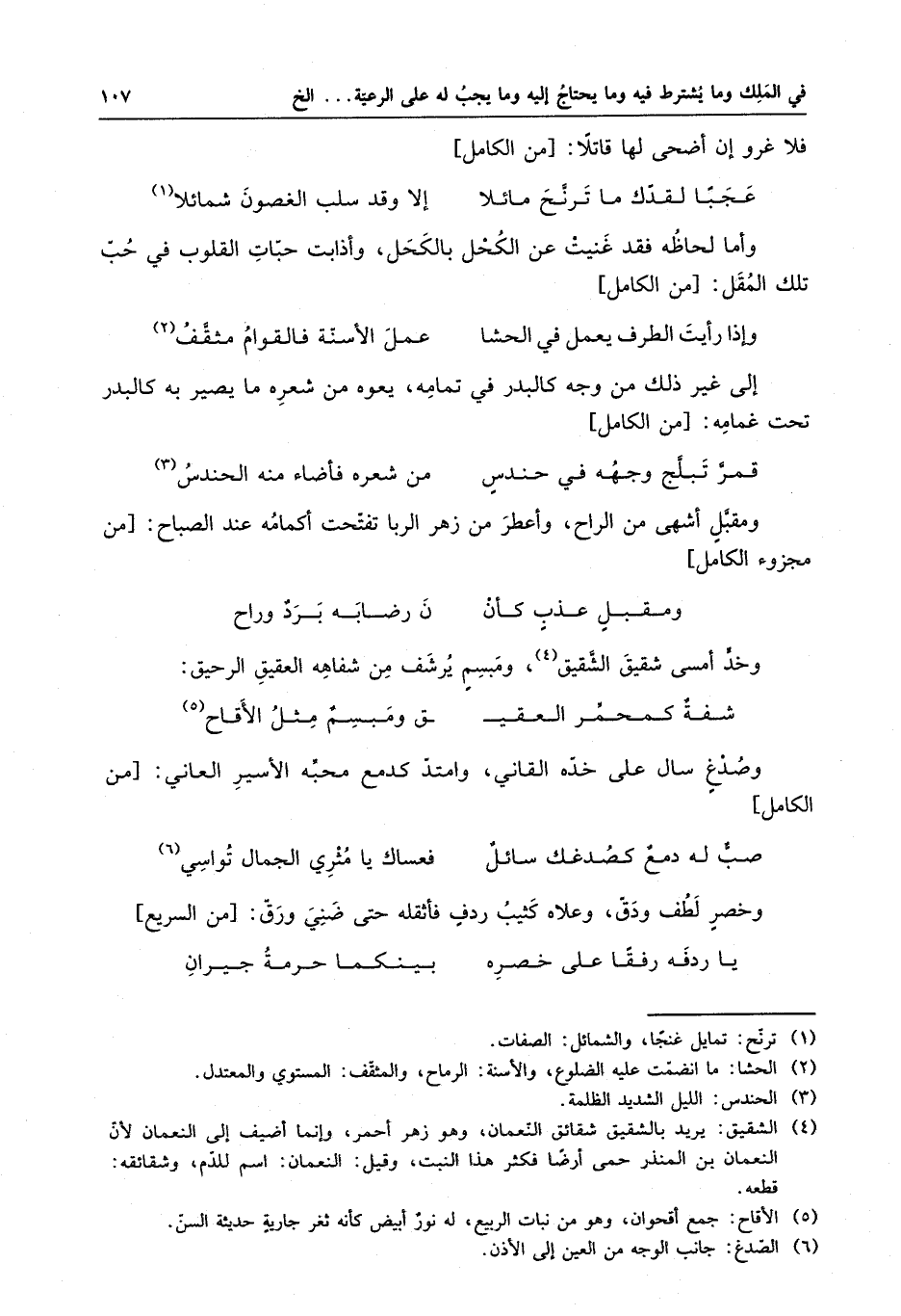وأما لحاظه فقد غنيت عن الكحل بالكحل ، وأذابت حبات القلوب في حب تلك المقل