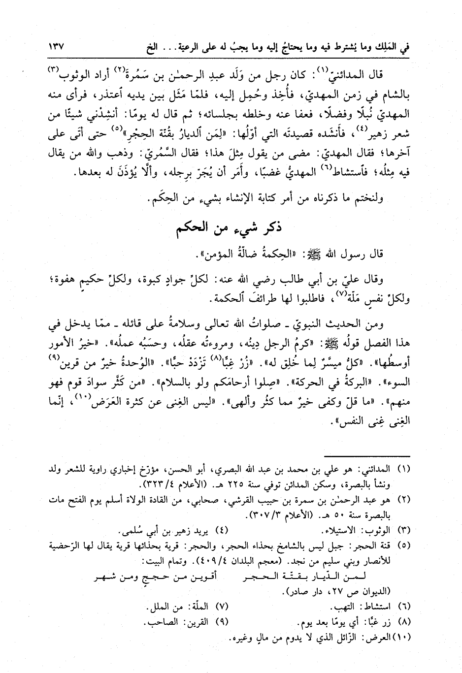 قال رسول الله ( صلى الله عليه وسلم ) : " الحكمة ضالة المؤمن " . وقال علي بن أبي طالب رضي الله عنه : لكل جوادٍ كبوه ، ولكل حكيمٍ هفوه ؛ ولكل نفسٍ ملة ، فاطلبوا لها طرائف الحكمة .