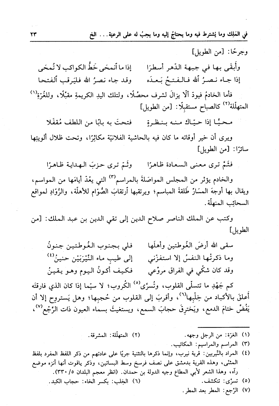 فأما الخادم فيود ألا يزال لشرف محصلا ، ولتلك اليد الكريمة مقبلا ، وللغرة المتهللة كالصباح مستقبلا