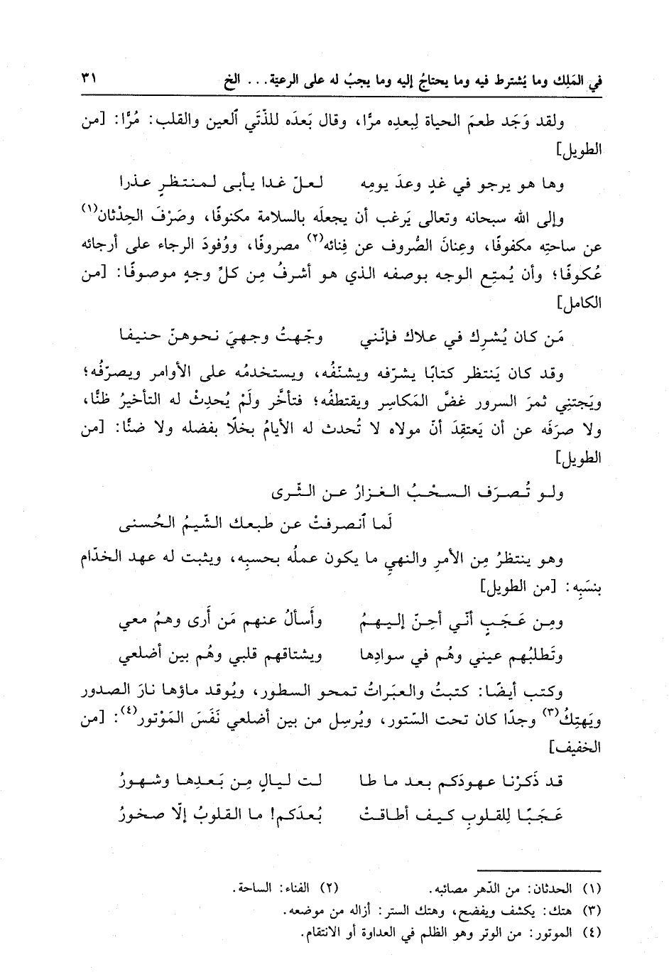 وإلى الله سبحانه وتعالى يرغب أن يجعله بالسلامة مكنوفا ، وصرف الحدثان عن ساحته مكفوفا ، وعنان الصروف عن فنائه مصروفا ، ووفود الرجاء على أرجائه عكوفا ؛ وأن يمتع الوجه بوصفه الذي هو أشرف من كل وجهٍ موصوفا
