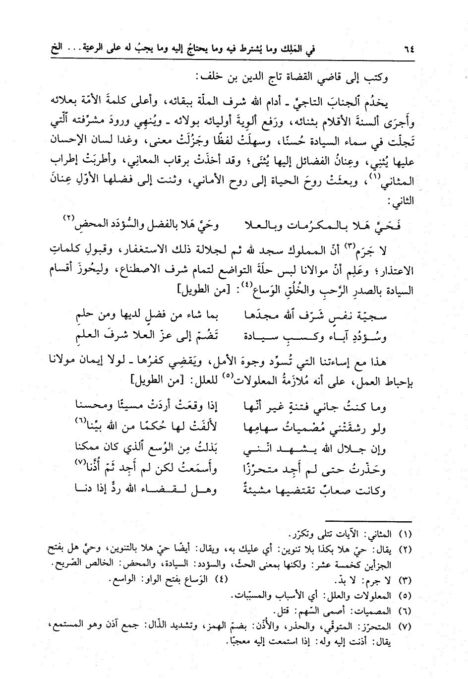 لا جرم أن المملوك سجد لله ثم لجلالة ذلك الاستغفار ، وقبول كلمات الاعتذار ؛ وعلم أن مولانا لبس حلة التواضع لتمام شرف الاصطناع ، وليجوز أقسام السيادة بالصدر الرحب والخلق الوساع