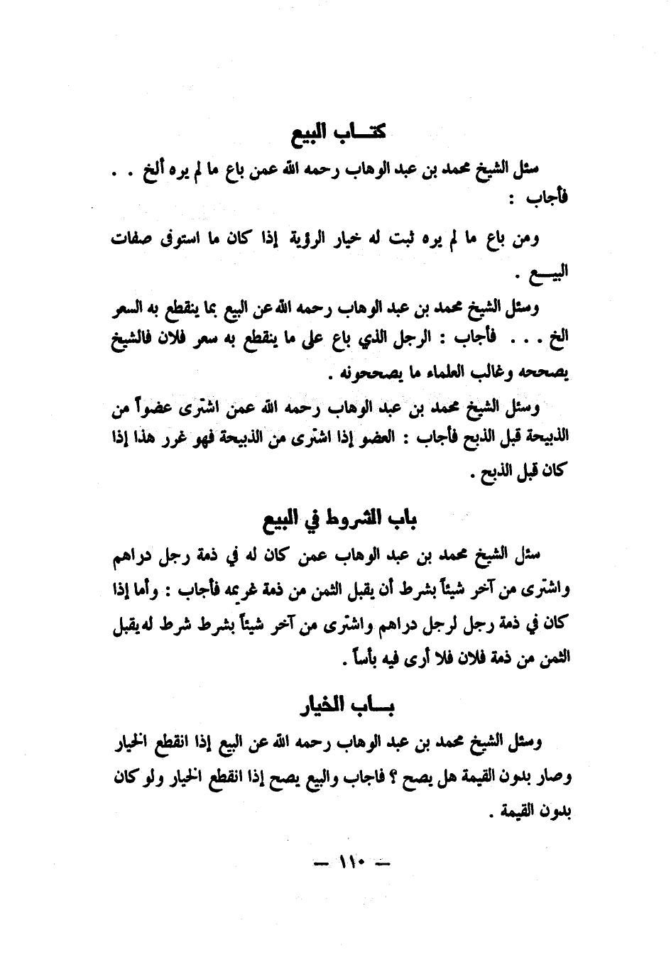 سئل الشيخ محمد بن عبد الوهاب، رحمه الله: عمن باع ما لم يره ... إلخ؟