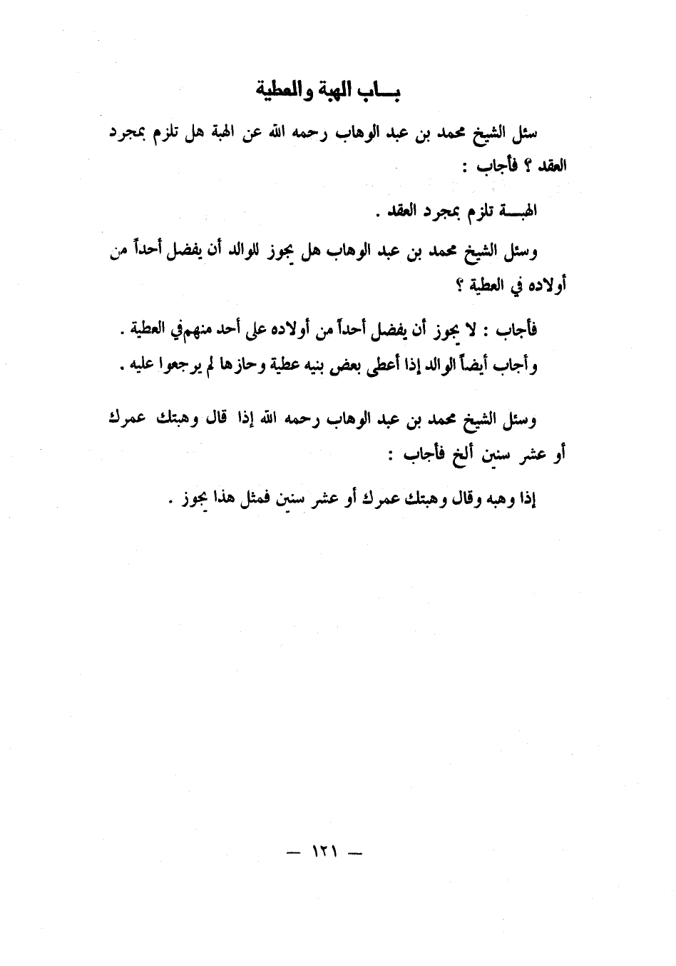 سئل الشيخ محمد بن عبد الوهاب، رحمه الله: عن الهبة، هل تلزم بمجرد العقد؟