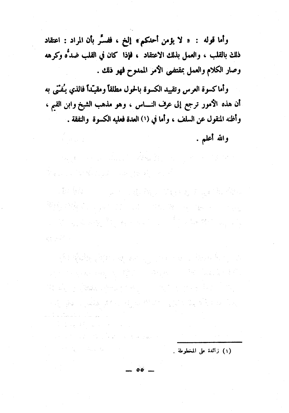 وأما كسوة العرس، وتقييد الكسوة بالحول مطلقًا ومقيدًا، فالذي يفتى به أن هذه الأمور ترجع إلى عرف الناس؛ وهو مذهب الشيخ وابن القيم وأظنه المنقول عن السلف. وأما في 1 العدة: فعليه الكسوة والنفقة. والله أعلم.