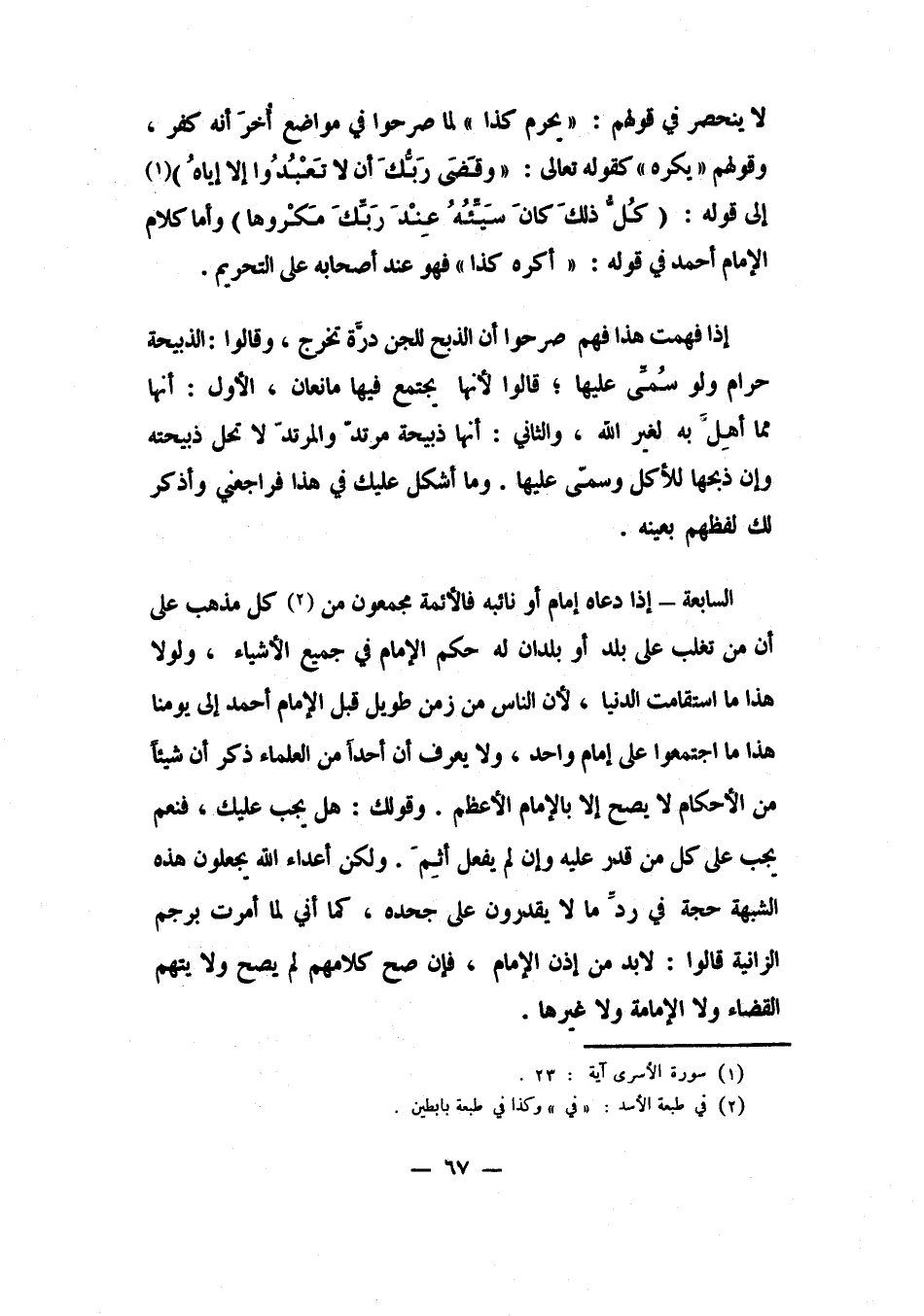 لا ينحصر في قولهم: "يحرم كذا" لما صرحوا في مواضع أخر أنه كفر، وقولهم: "يكره"، كقوله تعالى: {وَقَضَى رَبُّكَ أَلاَّ تَعْبُدُوا إِلاَّ إِيَّاهُ} 1 إلى قوله: {كُلُّ ذَلِكَ كَانَ سَيِّئُهُ عِنْدَ رَبِّكَ مَكْرُوهاً} 2. وأما كلام الإمام أحمد في قوله: "أكره كذا"، فهو عند أصحابه على التحريم.