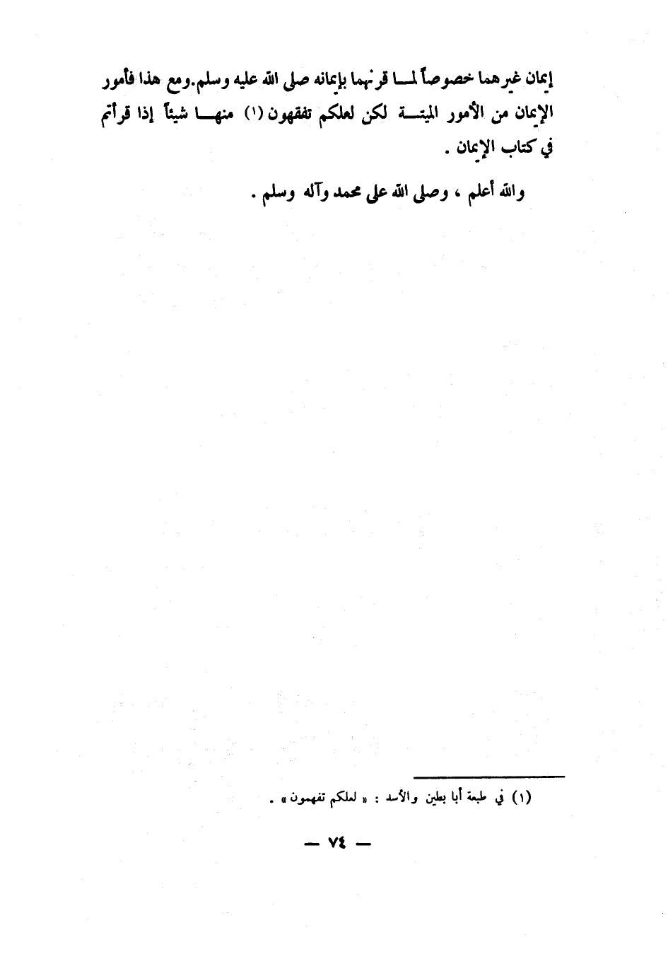ومع هذا، فأمور الإيمان من الأمور الميتة، لكن لعلكم تفقهون 1 منها شيئًا إذا قرأتم في كتاب الإيمان. والله أعلم، وصلى الله على محمد وآله وسلم.