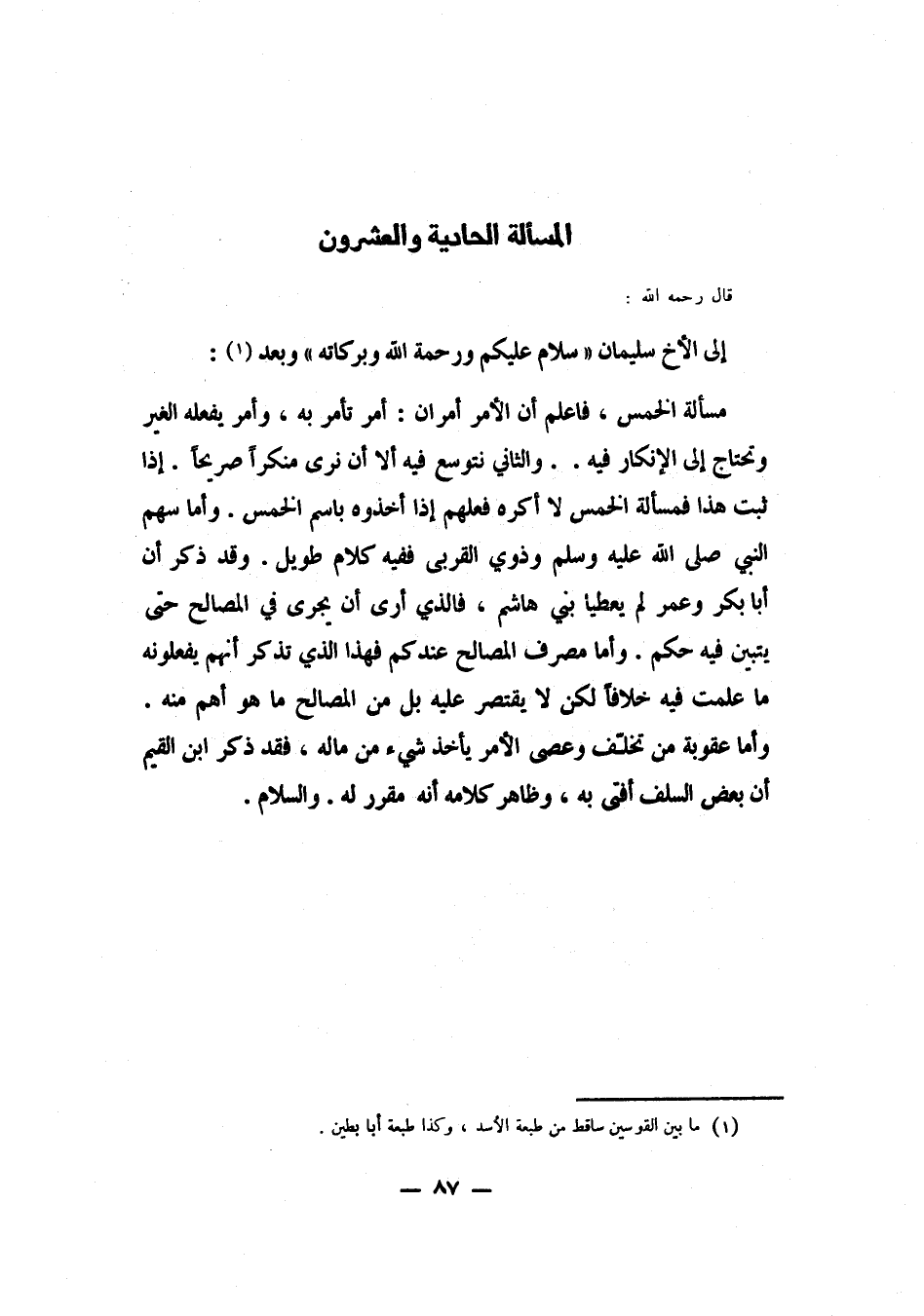 قال، رحمه الله: إلى الأخ سليمان، (سلام عليكم ورحمة الله وبركاته) 1.