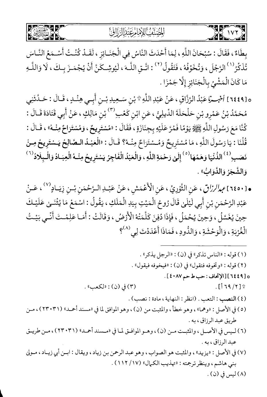 (¬٦) ليس في الأصل، والمثبت من (ن)، وهو الموافق لما في "مسند أحمد" (٢٣٠٣١)، من طريق عبد الرزاق، به.