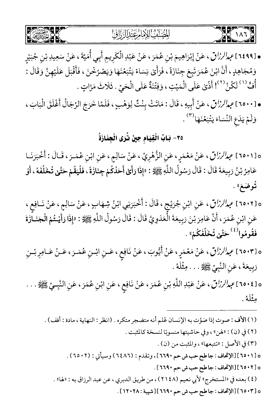 ° [٦٥٠٣] عبد الرزاق، عَنْ مَعْمَرٍ، عَنْ أَيُّوبَ، عَنْ نَافِعٍ، عَنِ ابْنِ عُمَرَ، عَنْ عَامِرِ بْنِ رَبِيعَةَ، عَنِ النَّبِيِّ - صلى الله عليه وسلم - ... مِثْلَهُ.
