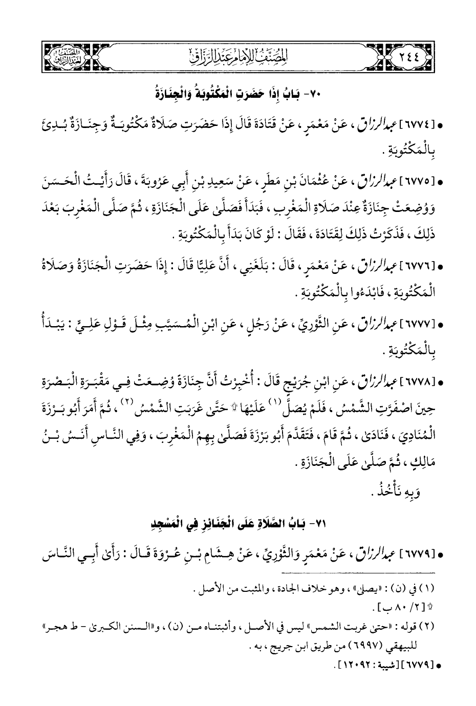 كتاب مصنف عبد الرزاق - ط التأصيل الثانية (اسم الجزء: 4)