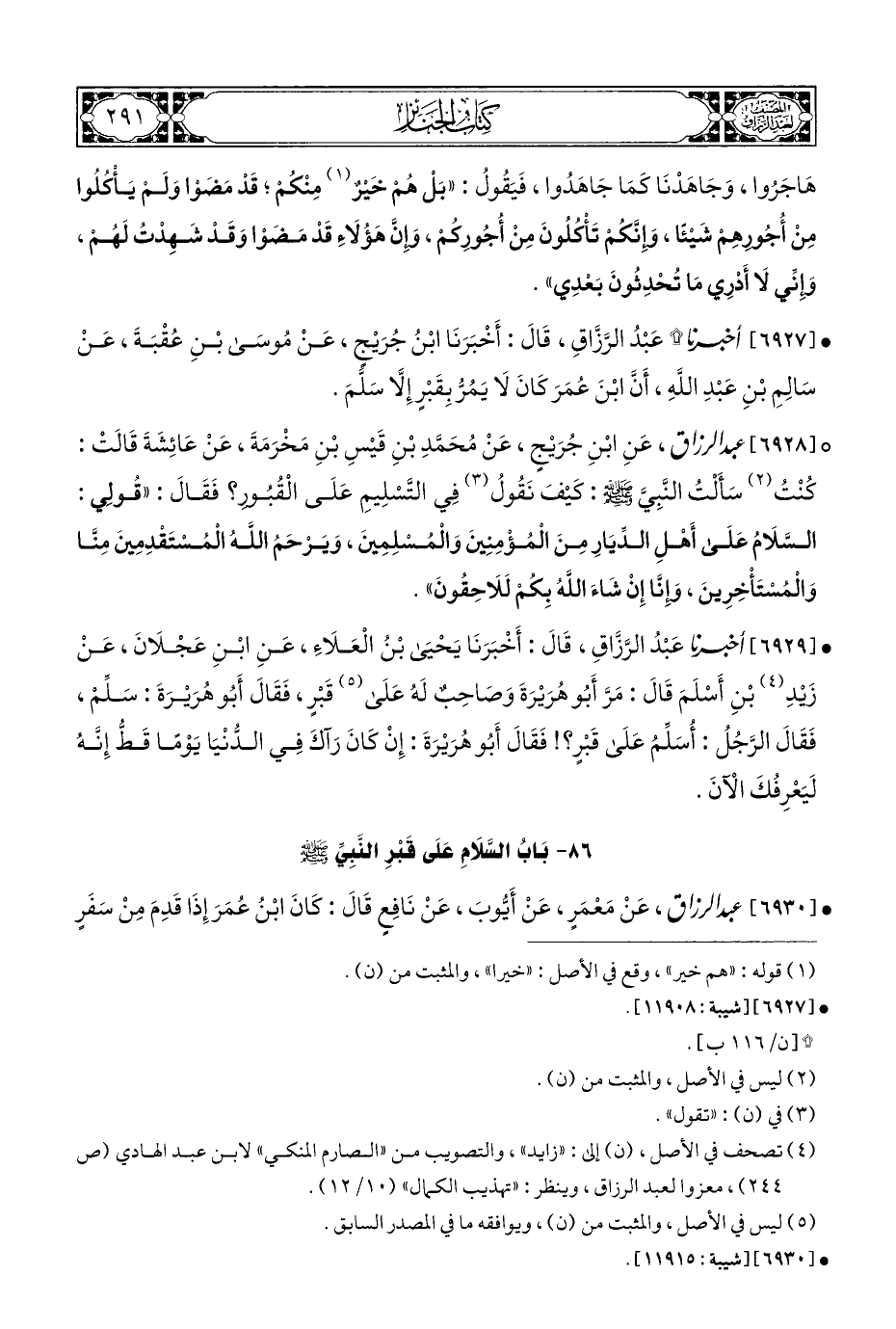 (¬٤) تصحف في الأصل، (ن) إلى: "زايد"، والتصويب من "الصارم المنكي" لابن عبد الهادي (ص ٢٤٤)، معزوا لعبد الرزاق، وينظر: "تهذيب الكمال" (١٠/ ١٢).