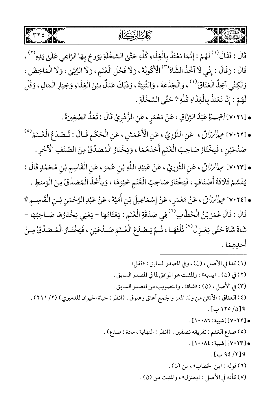 • [٧٠٢٢] عبد الرزاق، عَنِ الثَّوْريِّ، عَنِ الْأَعْمَشِ، عَنِ الْحَكَمِ قَالَ: تُصْدَعُ الْغَنَمُ (¬٥) صَدْعَيْنِ، فَيَخْتَارُ صَاحِبُ الْغَنَمِ أَحَدَهُمَا، وَيَخْتَارُ الْمُصَدِّقُ مِنَ الصِّنْفِ الْآخَرِ.